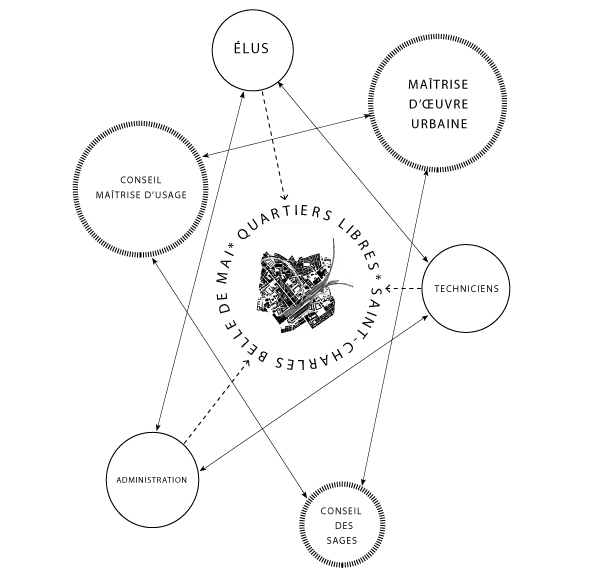 Or ces injonctions autoritaires, ces auto-proclamations de participation, ne s’intéressent finalement qu’aux phases amonts des projets. Au mieux, les démarches mises en œuvre ne permettent que d’affiner des cahiers des charges programmatiques, dont les applications resteront tributaires des bureaux d’études divers ou des pouvoirs politiques référents. Les questions de gouvernance de projets ne sont que peu remises en débat, et se cantonnent pour la plupart des cas à des « participations institutionnelles ».