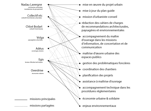 – d’une équipe de maitrise d’oeuvre opérationnelle répondant aux exigences pré-requises, constituée de jeunes professionnels aux multiples récompenses : l’Agence Nadau-Lavergne (PJU 2012 et AJAP 2012) en mandataire, avec comme co-traitants nous-même le Collectif Etc (PJU 2012 et lauréats Europan 11), Chloé Bodart de l’Agence Construire, Atelier Volga ( PJU 2014 et lauréats Europan 9, 10 et 12), Adeus, Overdrive et Égis.