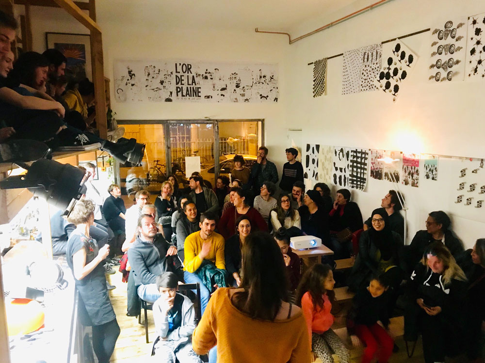 Après nous être installés avec Adrien Zammit de l’atelier Formes Vives, le graphiste Quentin Bodin du collectif Super Terrain nous a officiellement rejoint au début de l’année 2018. Notre cohabitation au quotidien nous permet de mettre en commun des outils liés à l’action dans l’espace public et des savoir-faire dans le champ de la création graphique et plastique dans quelques actions communes tournées vers le quartier.