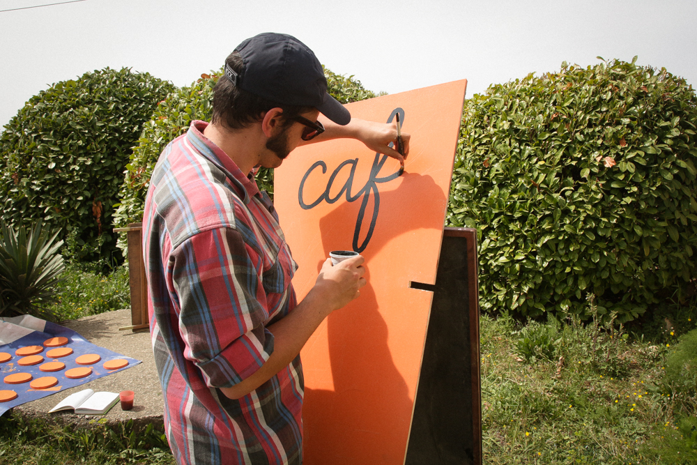 Les grandes orientations étant validées collectivement, des groupes différents s’occupent de chaque élément, sans dessin préalable, tout est décidé et construit sur place et sur mesure, obligeant à une certaine créativité de l’instant. En parallèle, l’identité graphique s’étend et s’étoffe, les formes et les couleurs s’emparent du projet.