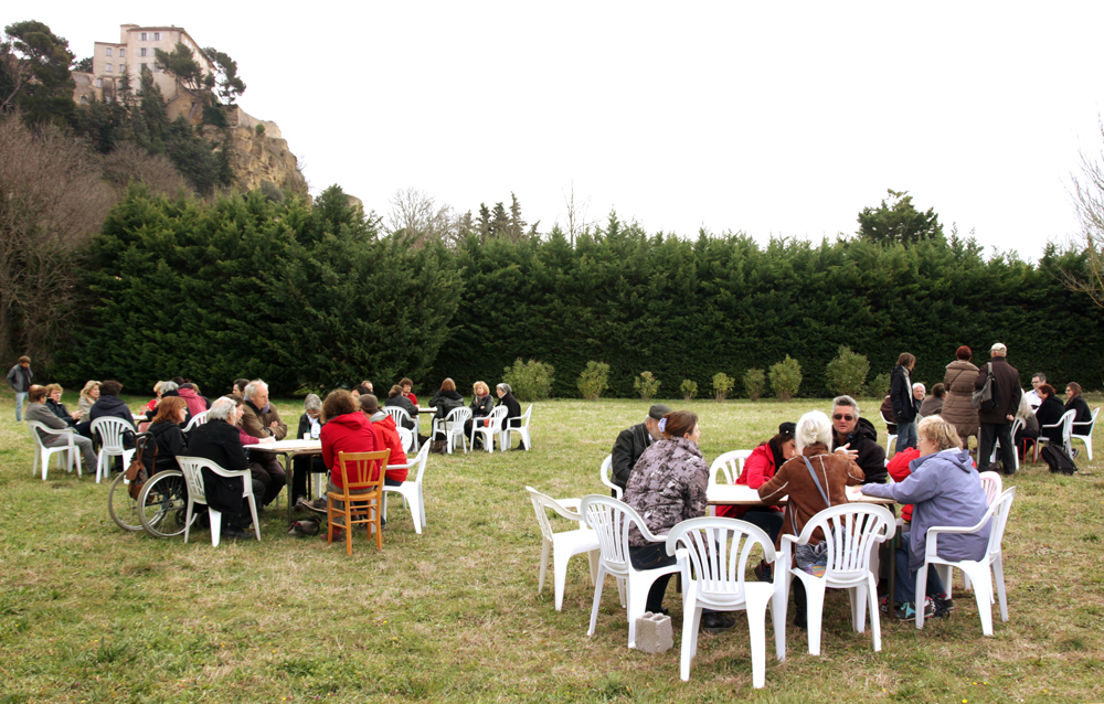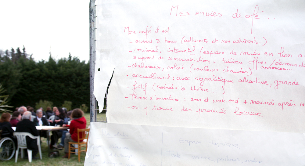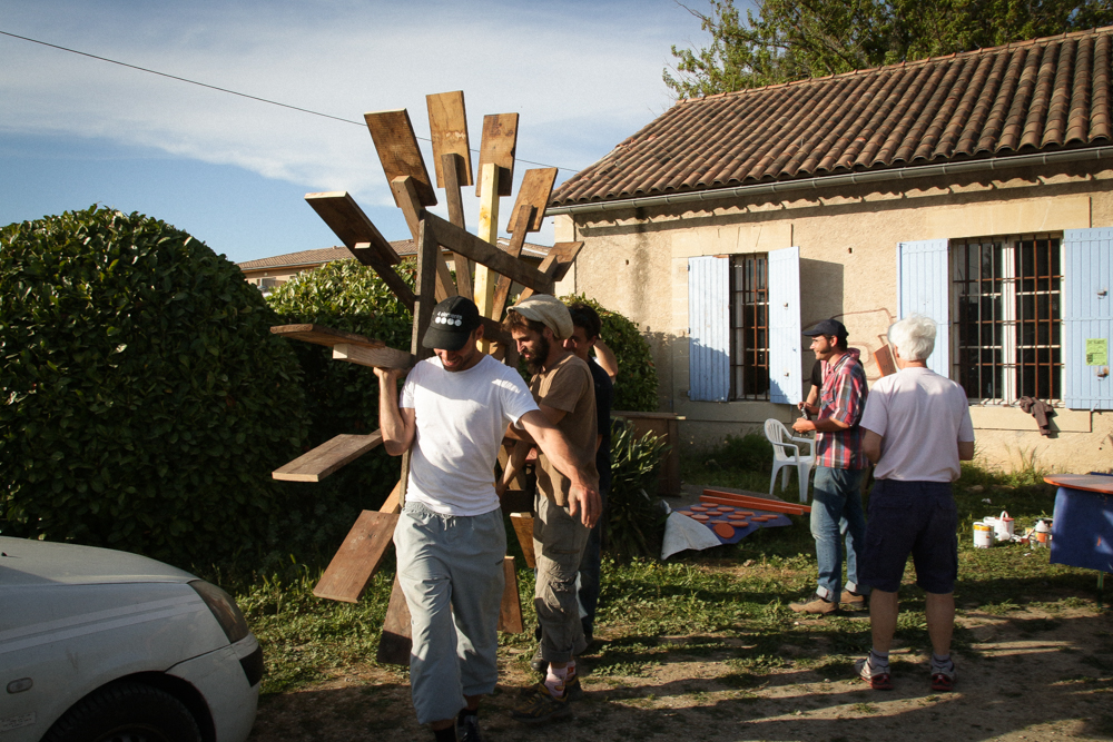 Au printemps 2015, nous sommes intervenus dans le village de Lauris, où nous avons accompagné l’association Au Maquis dans l’occupation du terrain de l’ancien, mis à disposition par la commune. Notamment pour y aménager un café villageois.