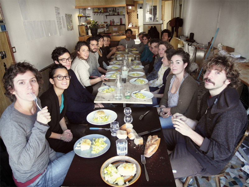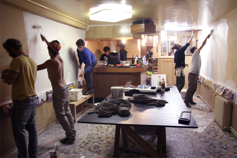 Encore itinérants après notre Détour de France, c’est intrigués que nous avons défait nos sacs à dos au 4 de la place Jean-Jaurès, pour six mois. La commune nous a ouvert les portes de l’ancien bar-restaurant » chez Hélène » , fermé depuis des années. Après quelques jours de nettoyage, peinture, bricolage de mobilier et quelques trajets vers Emmaüs, nous avons commencé à nous sentir chez nous. Deux espaces de travail, cinq chambres, une salle de bain, un atelier, une cour et un grenier… Lorsqu’il a fallu trouver un nom à ce nouveau local qu’on inaugurait le 15 septembre, nous avons eu envie de faire un clin d’oeil à cette fameuse association de l’Ollière dont nous avons parlé précédemment : la T.O.U.F. (Tous à l’Ollière Unis pour le Four), qui entretient et fait marcher un four à pain ancestral. Acronyme quand tu nous tiens, nous voilà nommés au P.O.I.L. : Projets pour l’Ollière et Idées Locales !