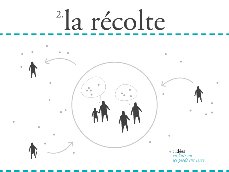 Les solutions existent, les idées aussi : allons les chercher ! La phase de récolte consistait à aller à la rencontre des usagers du centre-bourg, à enclencher discussions et réflexions, et à noter, lister, enregistrer, compiler les idées et les propositions de chacun. Nous avons voulu rencontrer tous les acteurs du centre-bourg : des habitants, mais aussi des visiteurs, travailleurs, agents immobiliers, sociologues, touristes, randonneurs,indépendants, retraités, grands ou petits, désabusés ou enthousiastes…