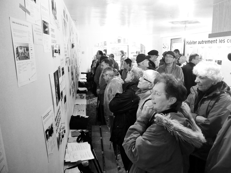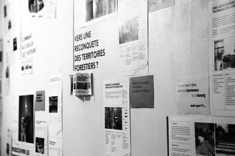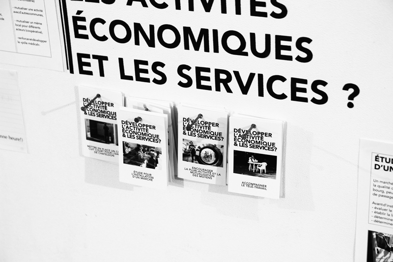 Et tout au long de notre étude, nous avons veillé à rendre lisible l’avancement de nos recherches, présenter le programme de nos actions, nos pistes de réflexions. Au n°4 place Jean Jaurès – là où l’on trouvait l’ancien bar-restaurant – se situait le lieu où notre travail était exposé, son déroulé et son avancement, les projets potentiels et leurs développements.