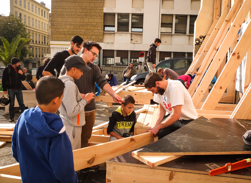 Tout au long de la semaine, différentes personnes ou structures ont pris part au projet, à des degrés divers : le CIQ et l’association des commerçants ; le Bazar de l’Hyper Centre ; le CCO Bernard Dubois -Velten, avec Laura, des animateurs et des minots ; l’Hôpital de Jour, son personnel et ses patients ; Tom et sa baronne ; Habitat Alternatif Social ; Aurélien Nadaud et ses interventions plastiques au gaffer noir, blanc et rouge ; Sophie, Julien et John, étudiants à l’École d’Art de Marseille ; Gwenaëlle et Gabriele ; Sylvain et Cédric ; Perrine et Nicolas de YesWeCamp ; le café Chez Mounir ; le Fennec ; SAFI ; Alexandre Malfait ; les chibanis du quartier et les autres…Nous les en remercions tous, et travaillons à des prolongements à cette première action.