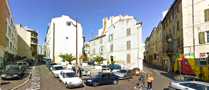 Officiellement, cette place n’en est pas une. Un immeuble bombardé durant la seconde Guerre Mondiale a laissé ce vide. Les techniciens l’appellent la place Fare/Petites Maries, en référence à deux rues s’y croisant, d’autres l’appellent la place des Chibanis : de nombreux hommes agés, principalement algériens, y flânent et y discutent. Depuis plus de 70 ans, cette place est en l’état, rafistolée de temps en temps lorsque les nids de poule deviennent dangereux. En 2012, un groupe d’habitants, porté par le CIQ et l’association des commerçants se mobilise pour prendre le problème à bras-le-corps. Le délaissé doit devenir une place. Suite à de nombreux débats, ils choisissent de lui donner le nom de Louise Michel, communarde décédée à quelques rues de là, ils apposent une plaque. En parallèle, ils créent un fond de dotation pour lancer les travaux avec les moyens du quartier, ils collectent des matériaux et des fonds. C’est à ce moment-là, en 2013, que la SOLEAM annonce officiellement qu’il est prévu de construire sur la place un nouvel immeuble. L’architecte des bâtiments de France soutient apparemment le projet qui retrouverait le tracé ancestral du tissu urbain. Le collectif d’habitant s’y oppose, et demande l’organisation d’un référendum sur le devenir de cet espace. La ville accepte, et finalement, la volonté de conserver ce lieu ouvert et public l’emporte, le quartier étant déjà d’une grande densité. Néanmoins, les élans de réappropriation collective de cet espace on été freinés par cet épisode, d’autant plus que la SOLEAM a annoncé que la réhabilitation de la place débuterait rapidement. Pour patienter, la ville y a déposé quelques palmiers en pots, ambiance tropicale !