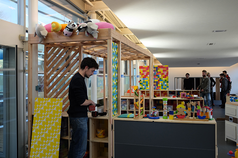 Réalisation de mobilier dans la ludothèque de la médiathèque de Saint-Herblain : une collaboration Collectif Etc et Super Terrain.