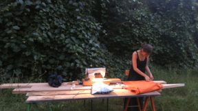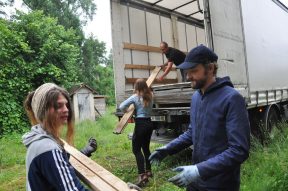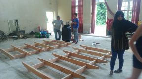 À pied ou en vélo, on pourrait suivre le canal d’Orléans pour s’y rendre, qui permit jadis de relier Paris pour le débardage de bois de la forêt domaniale. C’est ce même bois que l’on a déchargé du camion le premier jour du workshop : une chaîne de plusieurs paires de mains pour mettre au jour les deux mètre-cubes de planches et bastaings déclassés de l’entreprise Tecsabois. Cette démarche de ré-emploi a été permise par notre recherche conjointe avec les enseignants et l’ouverture d’esprit de l’entreprise.