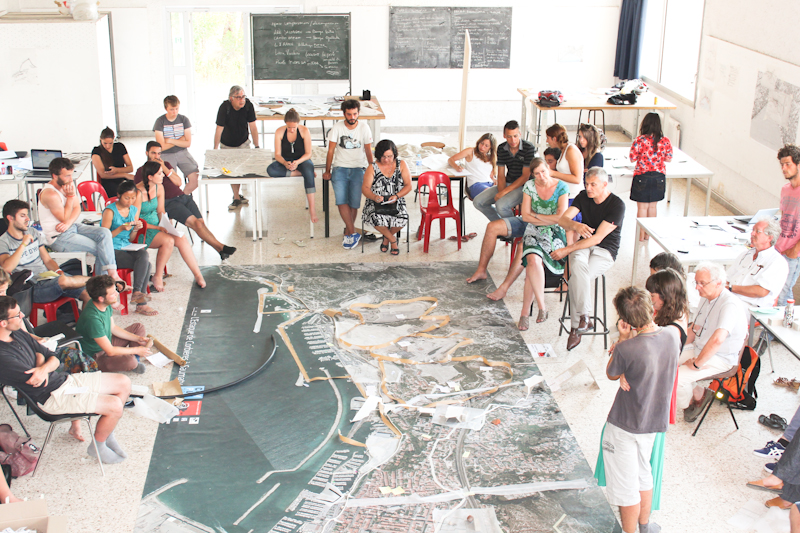 Durant cette semaine, ils étaient accompagnés de duo enseignant-professionnel : pour l’architecture, Stéphane Hanrot et Marc Barani ; pour l’urbanisme Michel Chiappero et Francis Ampe ; pour le paysage René Girard et Guerric Péré.