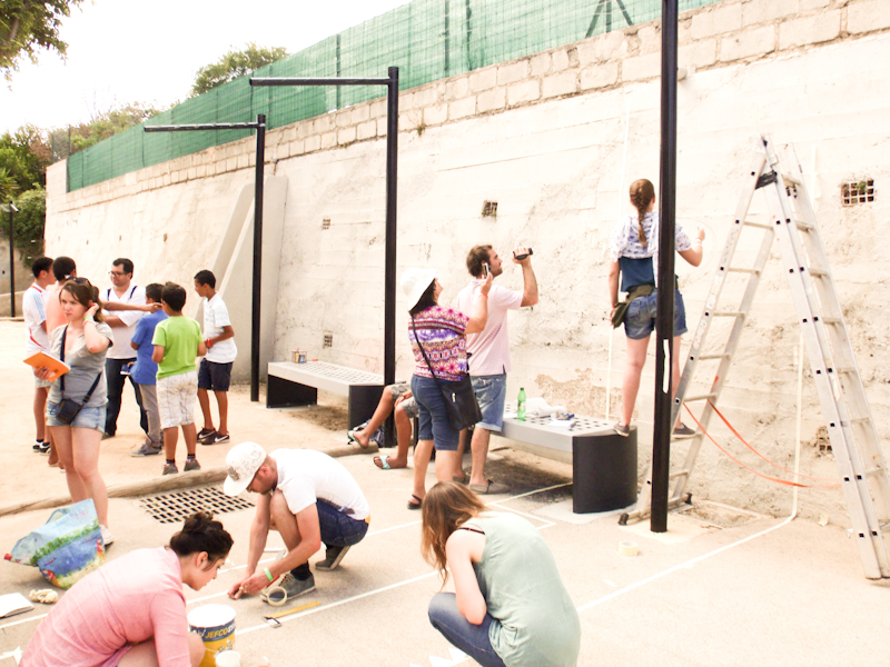 – Enfin en considérant qu’il procède à une forme d’échange entre les étudiants, et les usagers et habitants d’un territoire. Si les seconds sont sollicités pour leur disponibilité, les premiers laissent derrière eux un espace censé avoir amélioré la qualité du quotidien du quartier. Nous avons sélectionné les sites en fonction de leur intérêt pédagogique et de leur intérêt pour le quartier, lors de plusieurs repérages en amont pendant lesquels nous avons également rencontré et impliqué certains habitants et structures locales.