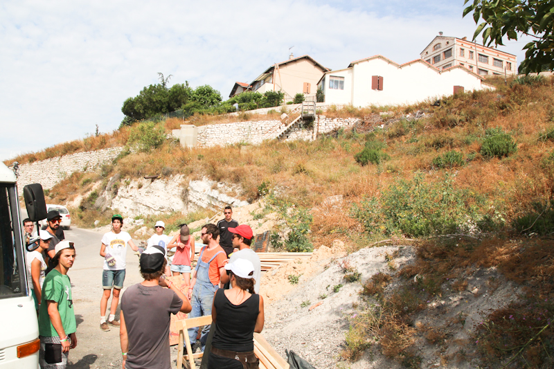 L’objectif étant d’intervenir sur l’Estaque, il était important que les étudiants s’imprègnent des lieux, éprouvent par exemple son manque de transport en commun, son rapport à la mer singulier, sa topographie accidentée, son éloignement du centre ville de Marseille, son ambiance particulière, bien que YesWeCamp reste une enclave particulière dans le quartier.
