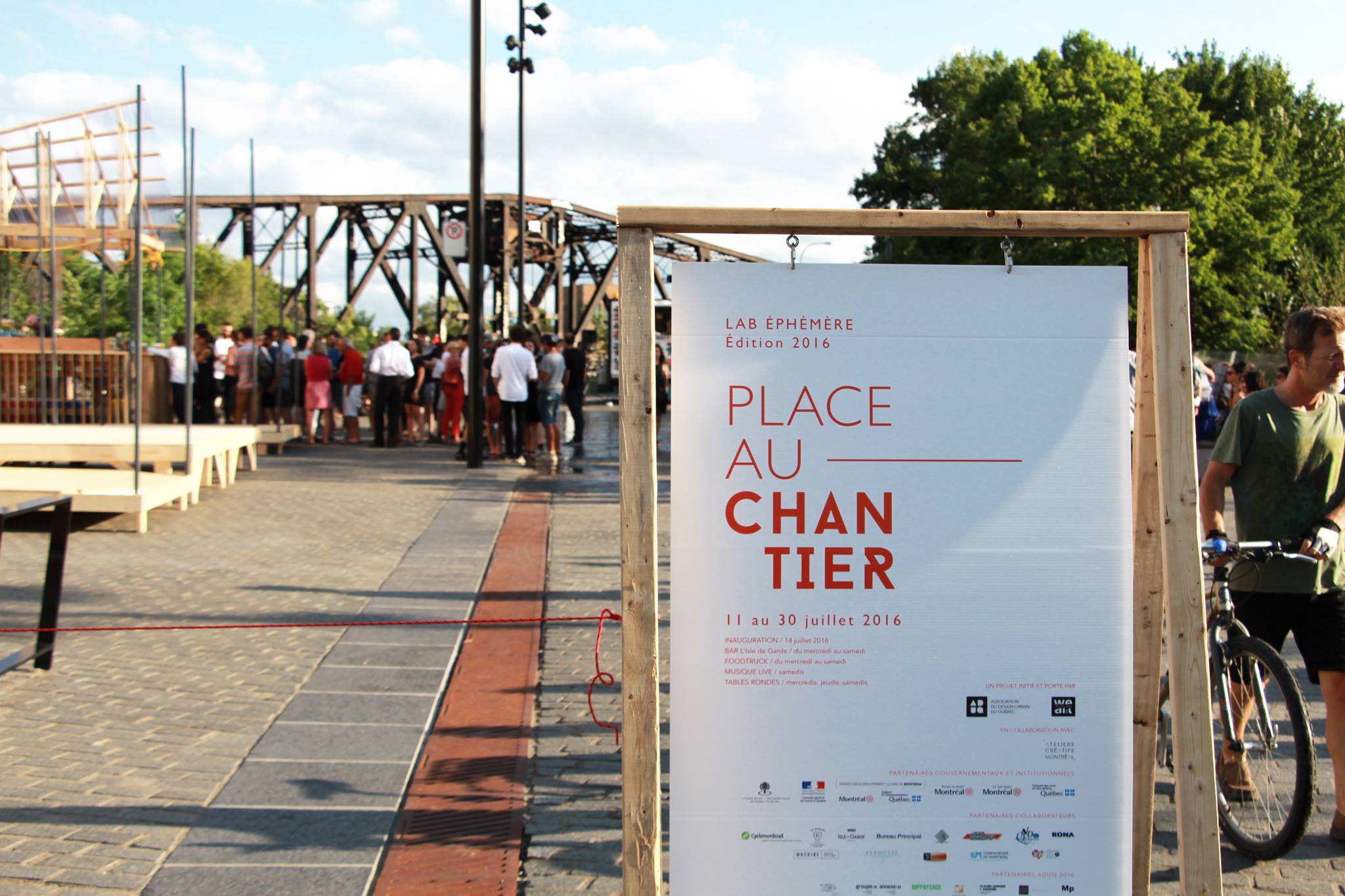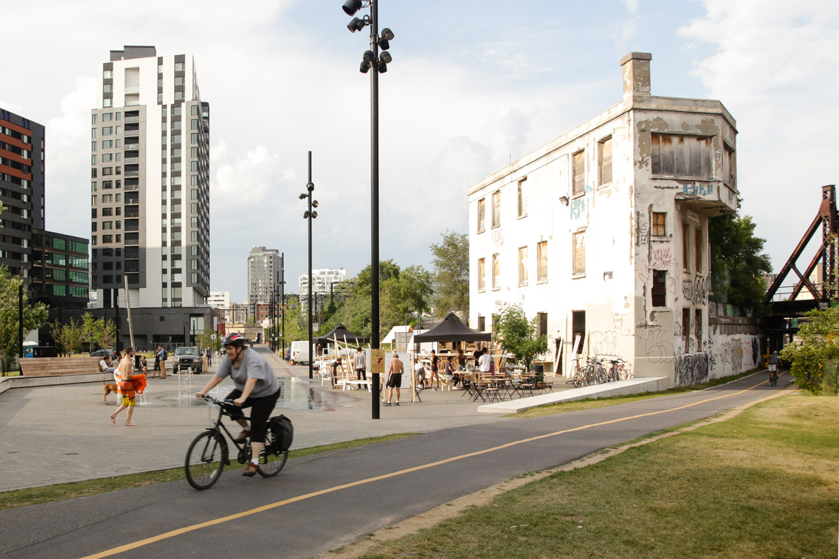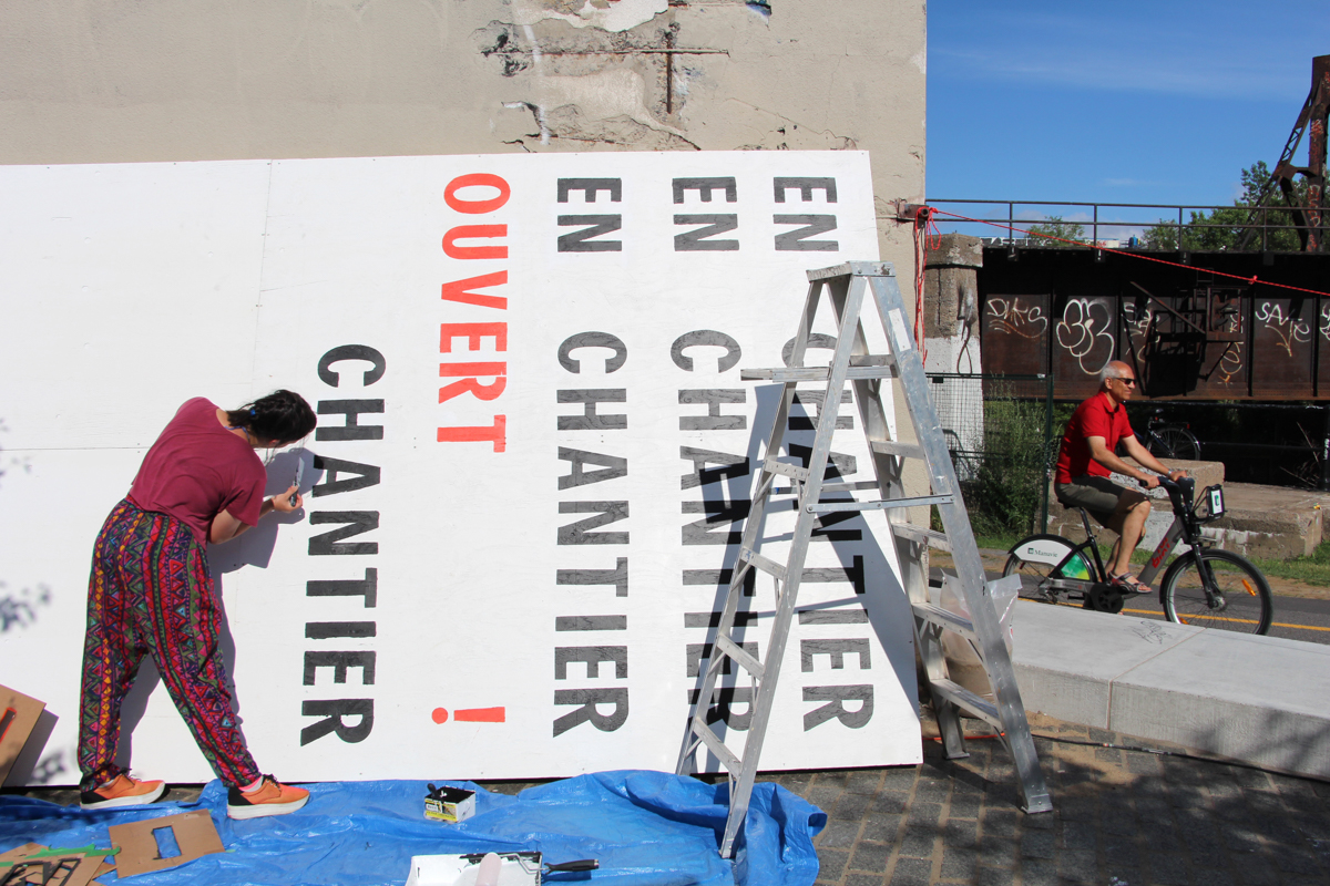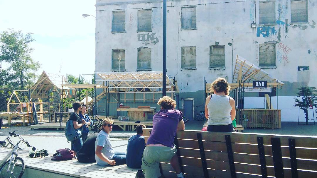 C’est sur une invitation de l’ADUQ et du collectif We/Art, lauréat avec Ateliers Créatifs Montréal du projet de requalification de l’ancienne Tour d’aiguillage Wellington, que nous sommes venus réaliser un chantier ouvert dénommé Place au chantier ! L’objectif était de réaliser une cabane de chantier qui serve de lieu de discussions et de rencontres autour de la future requalification du bâtiment en équipement culturel mixte. Pour cela, nous avons collaboré avec quatre gang de designers locaux : Collectif ALLLY, L’ABRI, les ÉCHARDÉS et Collectif L’ESPÈCE.