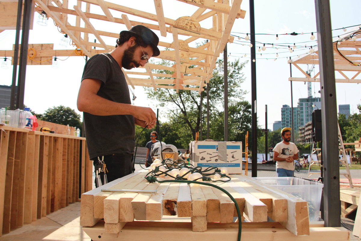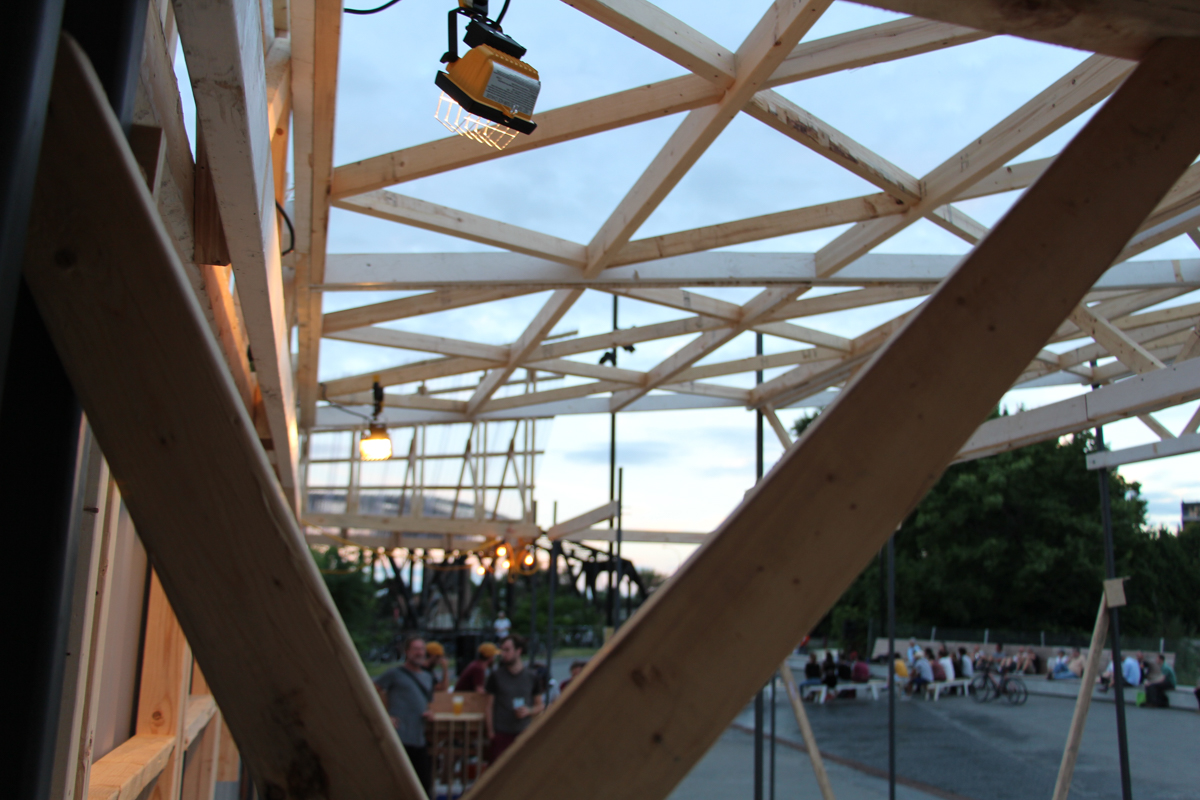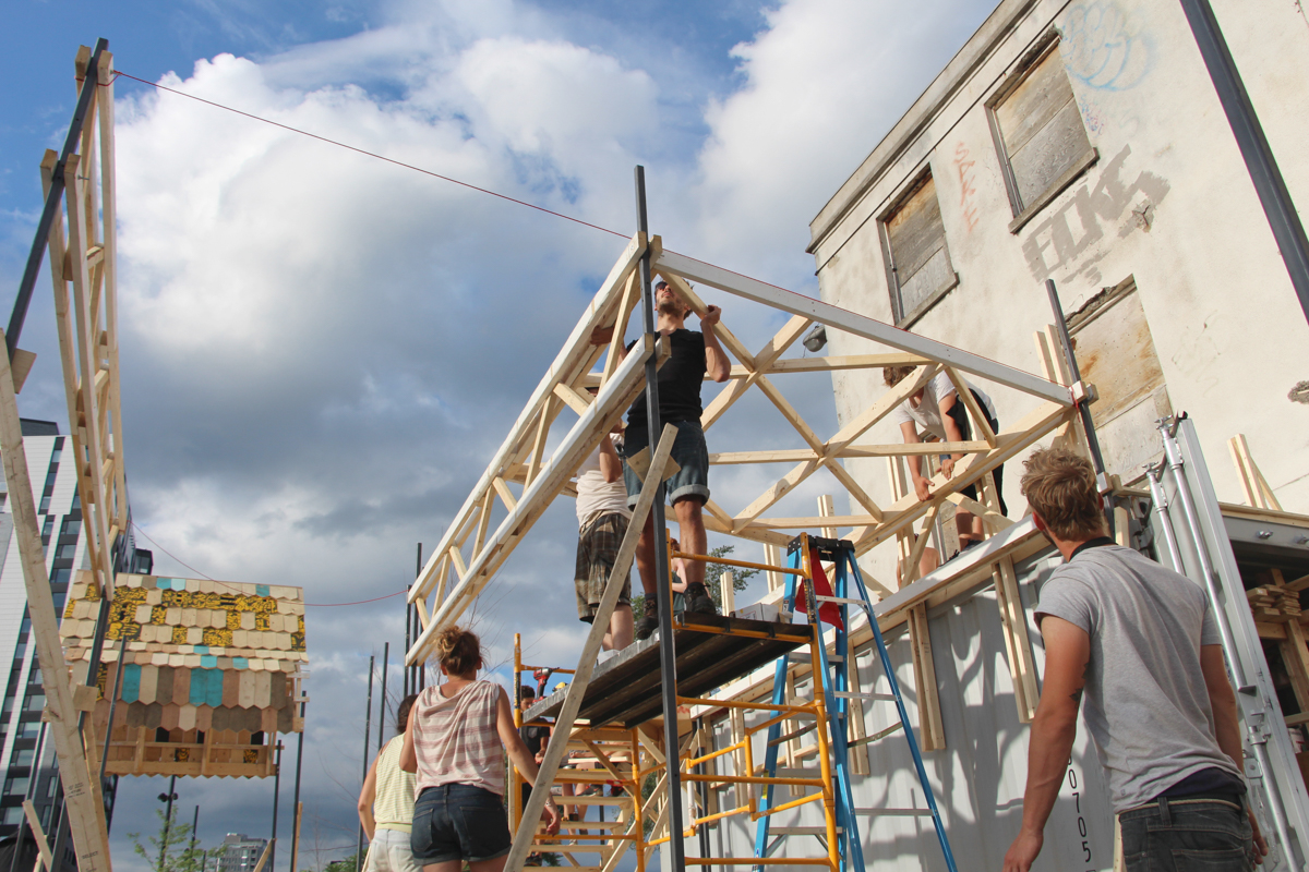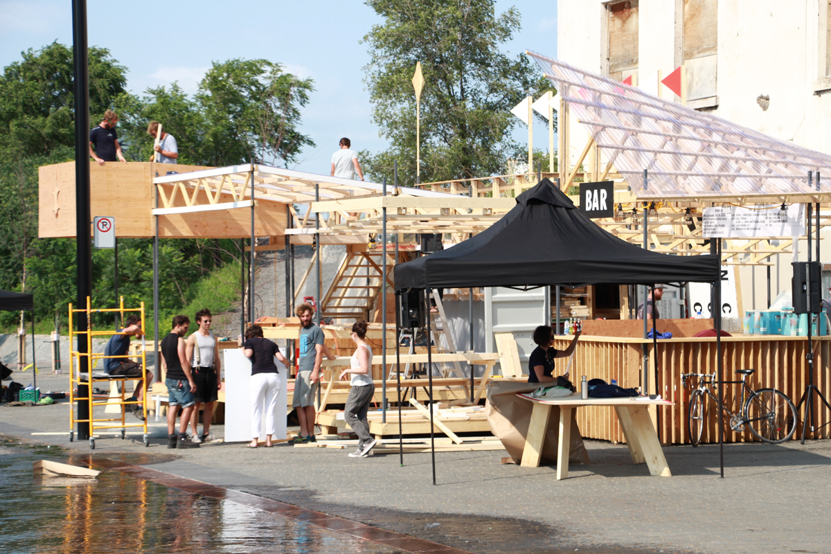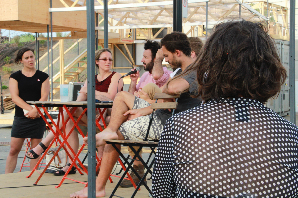 Ainsi, pendant ces deux semaines, c’est pas moins d’une vingtaine de designers qui se sont attelés à la construction de cet espace, qui devait pouvoir être démonté facilement. De nombreux événements festifs, des tables rondes, discussions et autres jouailles locales ont ponctué le chantier. Les vidéos suivantes, réalisées par Hadrien Basch, des Films sur la Comète, que nous avions amené dans nos bagages, racontent le contexte et les enjeux du projet.