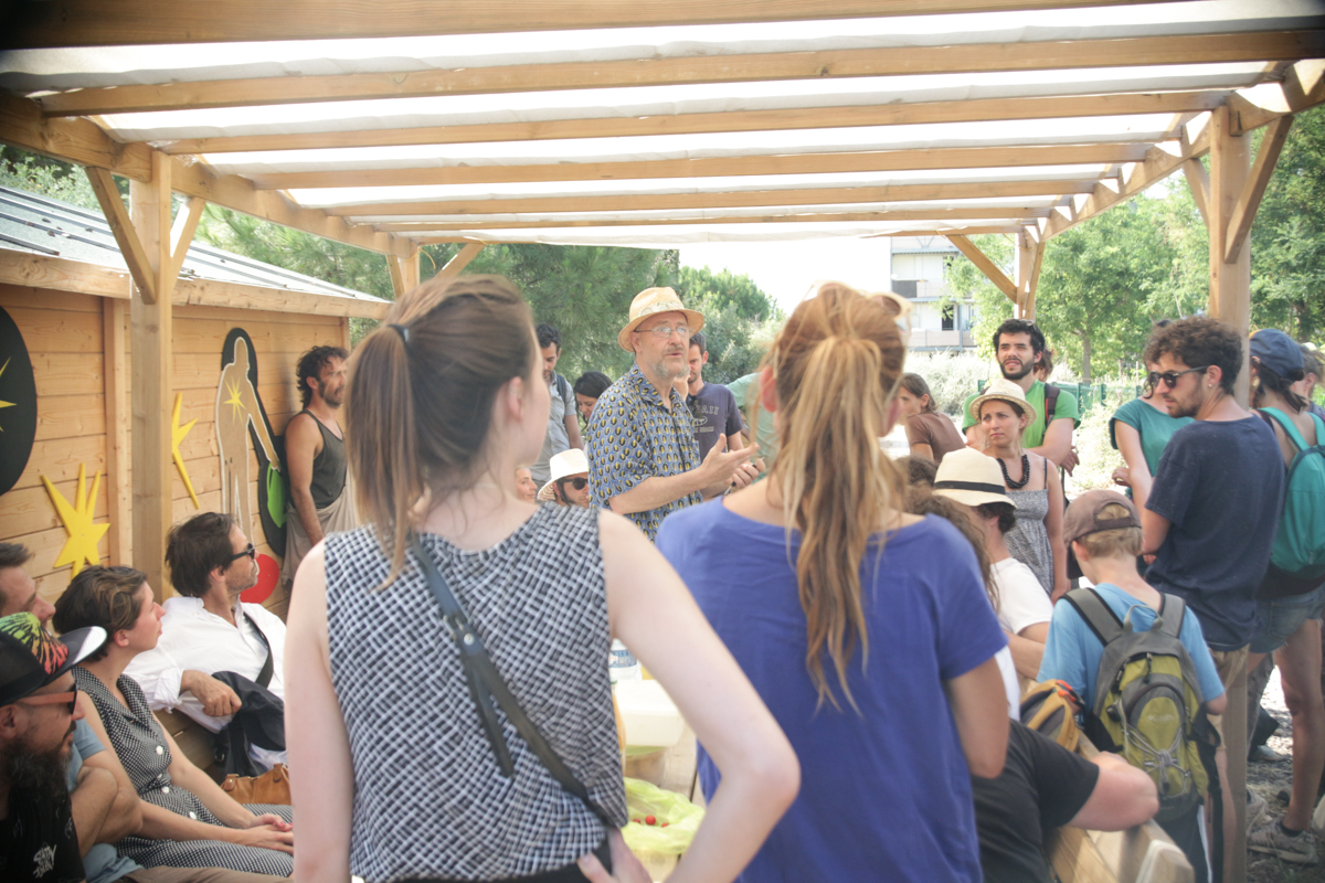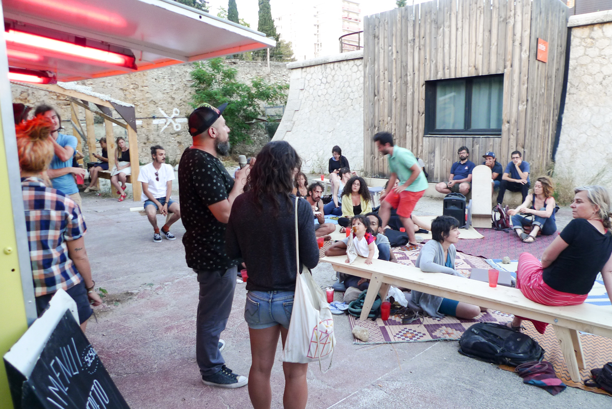 Nous étions accompagnés d’une dizaine de Madrilènes, invités pour mettre en résonance un Marseille s’auto-organisant et un Madrid bouillonnant de dynamiques collectives : il y avait nos amis de Basurama, de Todo Por La Praxis, de Madstock et de Montera34. Et bien sur Domenico Di Siena.