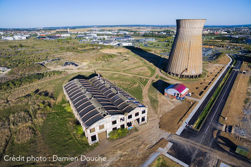 La Société Métallurgique de Normandie a été pendant près d’un siècle la plus grosse industrie Normande, employant jusqu’à 6000 personnes (1973) sur le plateau, usine paternalistes dotée de ses écoles ses équipements culturels et sportifs. Après plusieurs crises et rachats, l’usine est définitivement fermée en 1993, certaines installations sont démontées et vendues en Chine. la plupart des bâtiments sont détruits. Seuls vestiges restants, le réfrigérant et les anciens ateliers électriques, autrefois petite partie de l’usine, aujourd’hui « grande » halle trônant au cœur d’une friche de 160 hectares, territoire des motocross, des gitans et des artistes. En 1996 une SEM (aujourd’hui Normandie Aménagement) est créée entre autre pour gérer et aménager le plateau. Le site est progressivement « reconquis » par la zone d’activité Normandial à l’ouest, le campus effiscience au sud, le quartier Jean Jaures au nord…