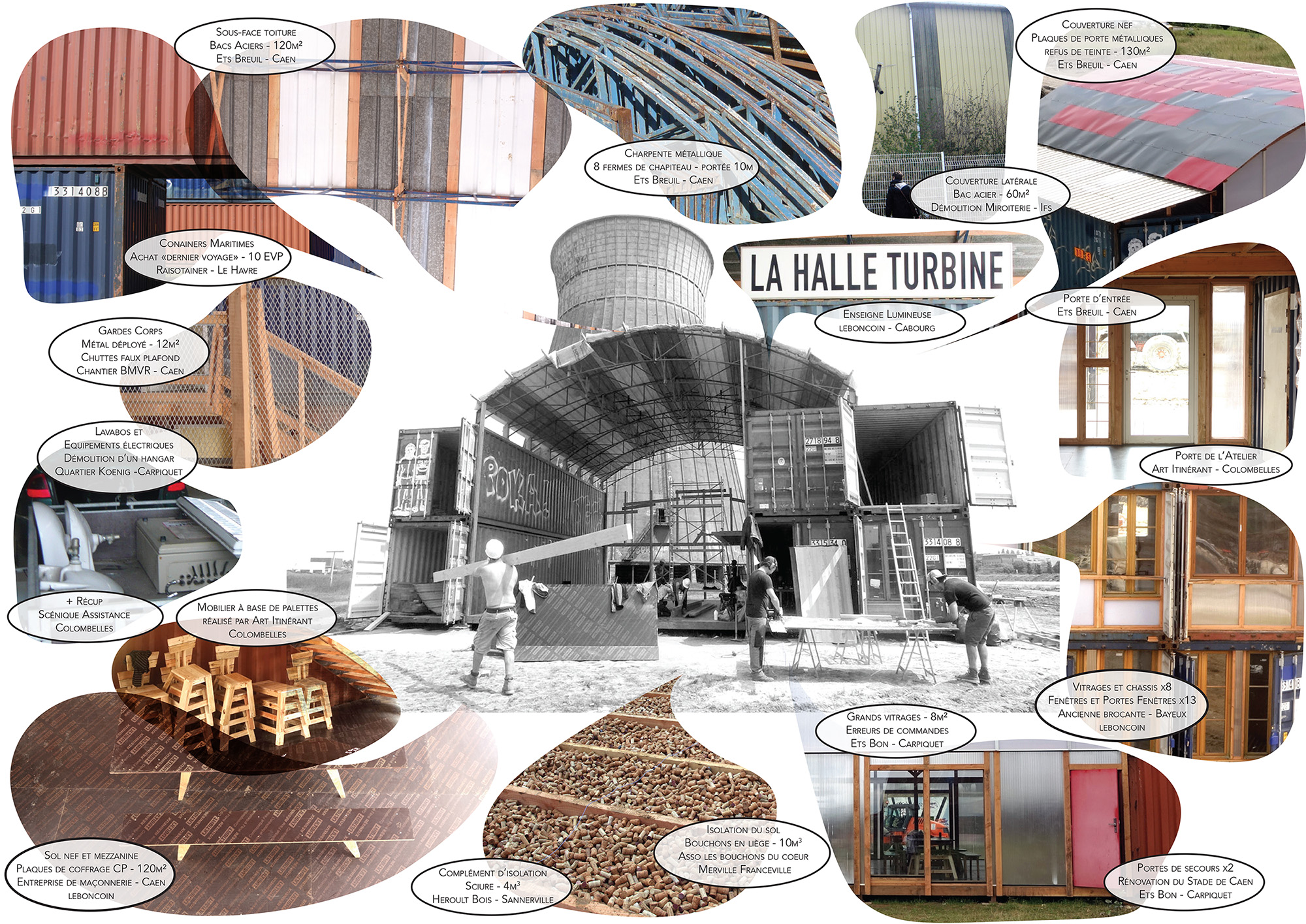 En juin 2016 nous avons passé un mois intense à Caen pour construire la cité de chantier du projet grande halle à Colombelles. Un des derniers vestiges de la Société Métallurgique de Normandie qui va être réhabilité en tiers lieu dédié à l’économie circulaire, par les agences Construire et Encore Heureux, pour Normandie Aménagement qui est responsable, entre autre, de l’aménagement du Plateau (ancien site de la SMN).