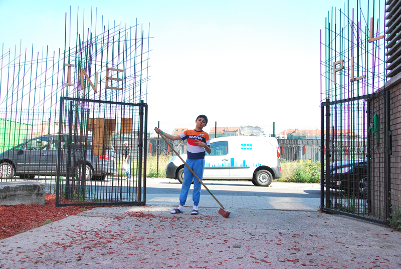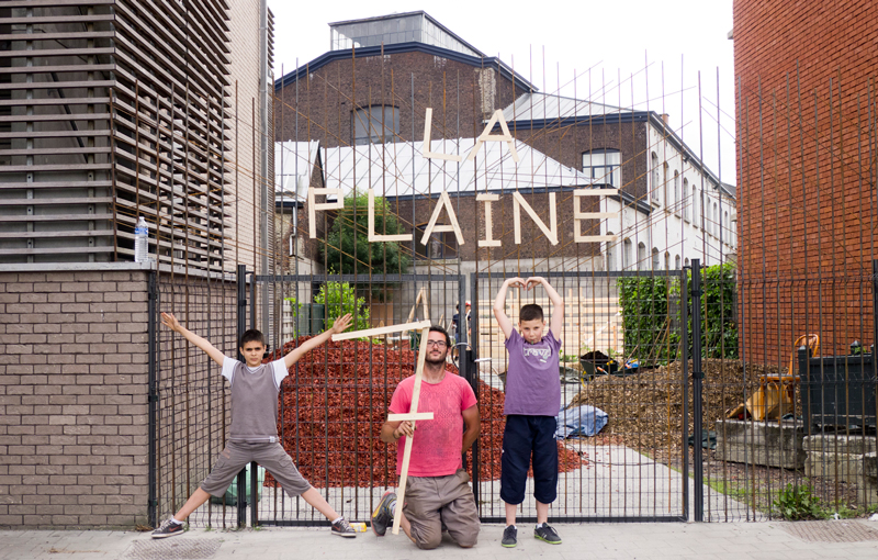 Les plots en béton, témoins de l’ancien aménagement du site, ont été déplacés pour faire de la place. Un système de récupération d’eau pluviale et d’arrosage a été mis en place afin de faciliter l’entretien des jeunes pousses. Pendant ce temps là, le nom du jardin a été acté par les enfants des immeubles voisins : LA PLAINE X70 (prononcer » dix – septante »). Ce nom fait référence au code postal du quartier : 1070 et, selon les coutumes locales, le terme » plaine » désigne un terrain vague . Des grandes lettres en bois ont été fabriquées avec une association du quartier et accrochées sur le portail revisité à l’aide de fer à béton. Chaque bacs à jardiner était géré par une famille habitant les immeubles environnants. Pour les aider, Tiphaine Hameau menait des ateliers d’accompagnement au jardinage.