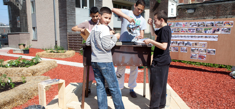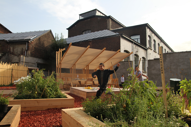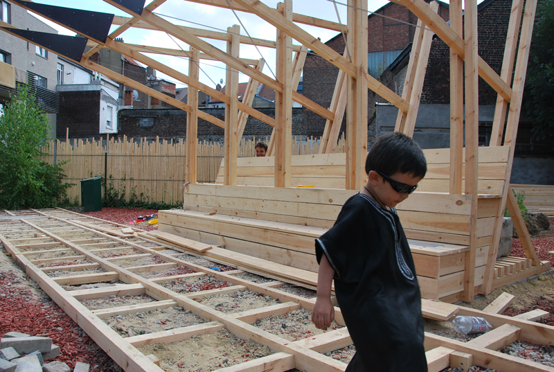 L’objectif était de faire un espace partagé qui serait co-géré par la ville de Bruxelles et par un collectif d’usagers identifié mais qui resterait ouvert au public. Il était évident que la condition de réussite du projet serait avant tout l’implication des habitants des 2 immeubles. Non seulement il s’agissait de motiver ces gens à utiliser et à prendre en main cet espace de manière collective mais il s’agissait aussi de permettre à d’autres gens du quartier de venir en profiter. C’était un double travail de pédagogie auprès des habitants qui a débuté dès la première phase.