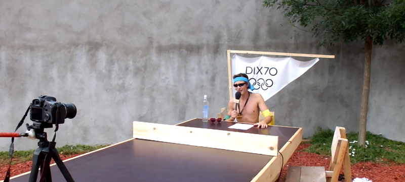 Tous les jours en parallèle des évènements sportifs, un journal télévisé auto-produit présentait les préparatifs de la mise en scène de l’épreuve, le déroulement de celle-ci et la remise des médailles. Le soir, le reportage était projeté en grand format dans le jardin. L’objectif était de prolonger l’imaginaire des jeux olympiques et d’inciter les gens à venir dans le jardin.