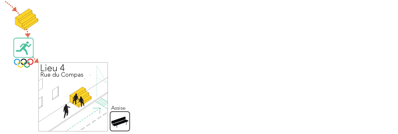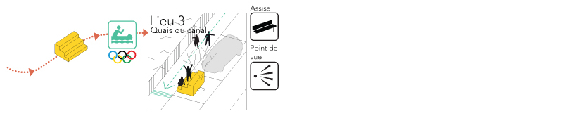 – Temps 3 : Les supports pour les épreuves ont été maintenus sur place pouvant ainsi accueillir d’autres usages : assises pour les gradins, rampe d’accès pour le golf, etc.