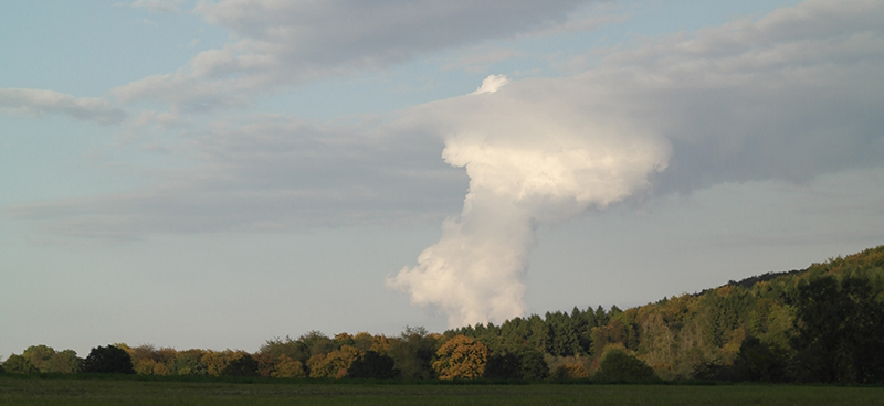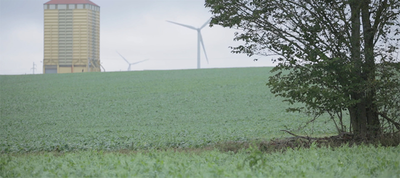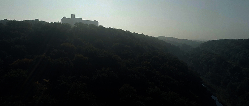« La cité radieuse du Corbusier trône au dessus de la forêt de la vallée du Woigot et de la plaine agricole qui l’entoure. Du nuage de fumée lointain, on devine la présence active d’une centrale nucléaire. Les éoliennes, le silo à grain, les anciennes usines sont autant de marqueurs d’un paysage métamorphosé par l’ère industrielle du XXème siècle, ils forment les figures tutélaires et mythogéniques de ce grand paysage. »