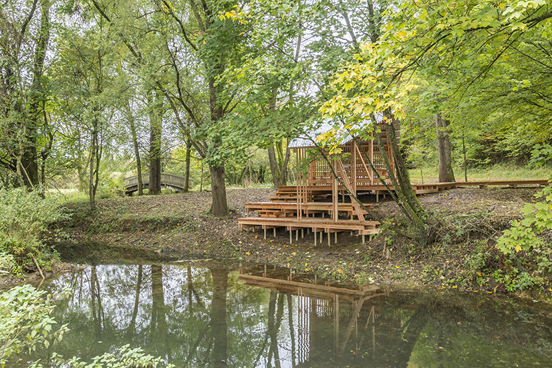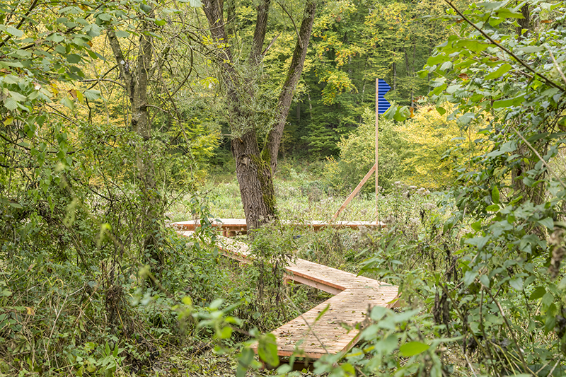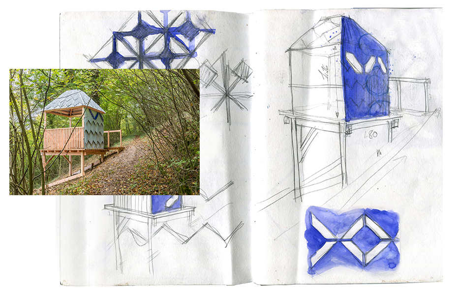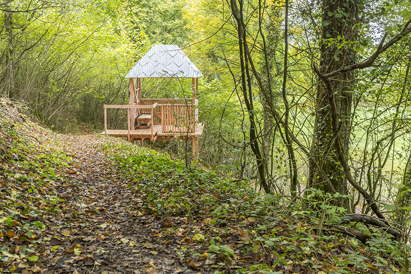 Les règles de constructions sont relativement simples et appropriables rapidement. Le bois et la tôle sont les uniques matériaux de construction. La cabane, la passerelle, le belvédère, l’observatoire se répondent dans le paysage entre Woigot et voie verte.