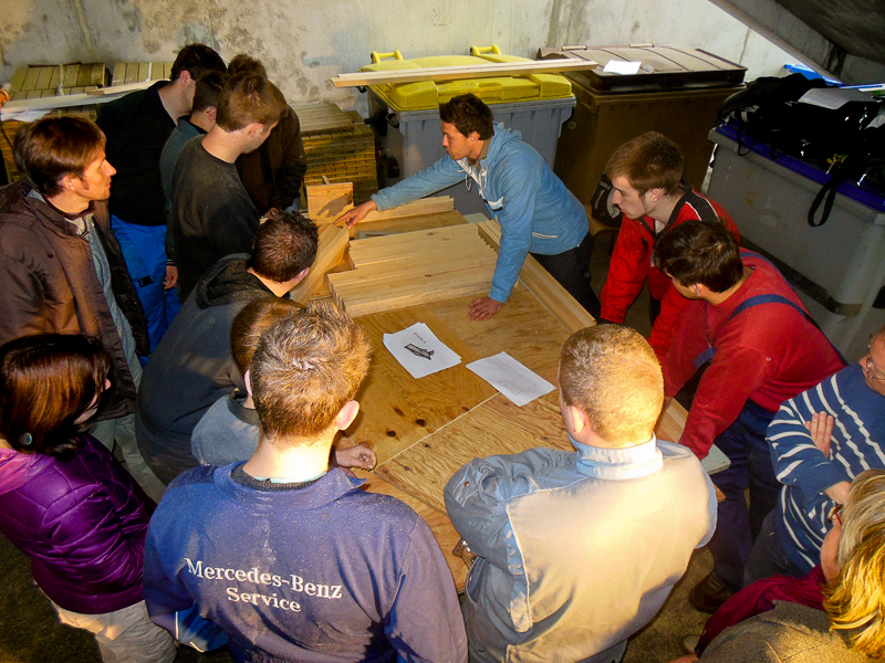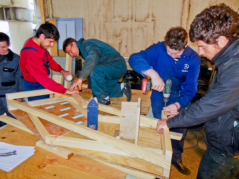 Ce projet a impliqué une grande partie des sections du lycée. Ce sont les élèves de la formation « transport poids lourd » qui ont été chercher la commande de bois à la scierie.