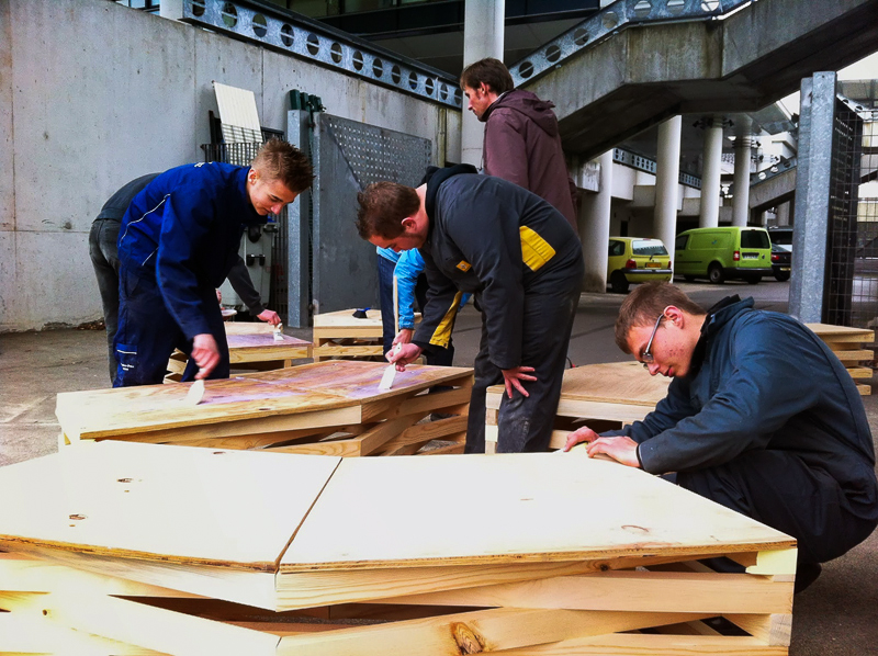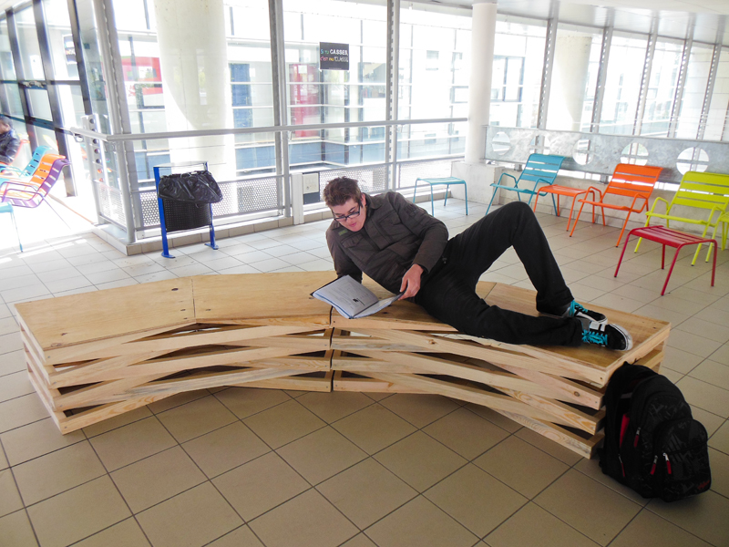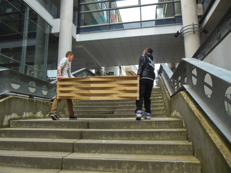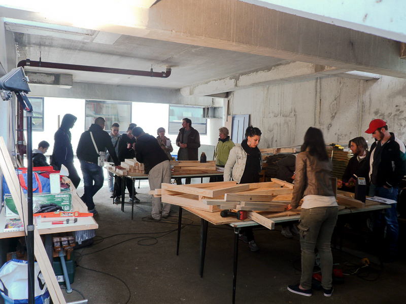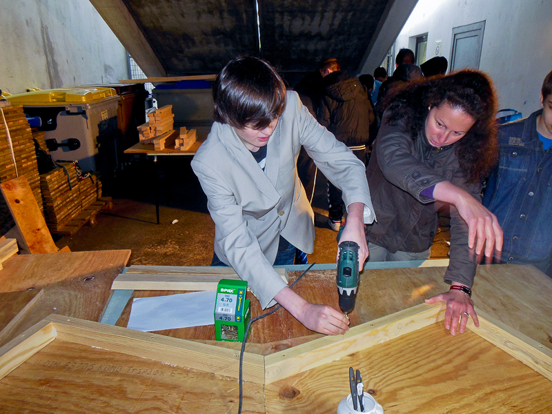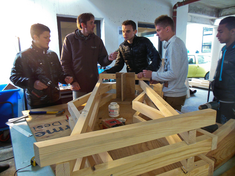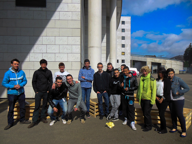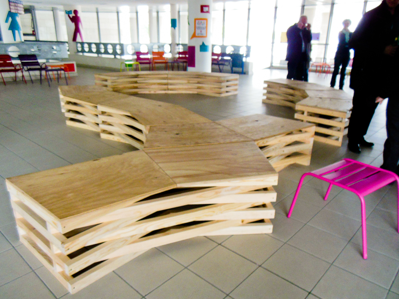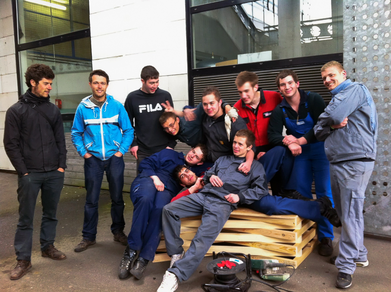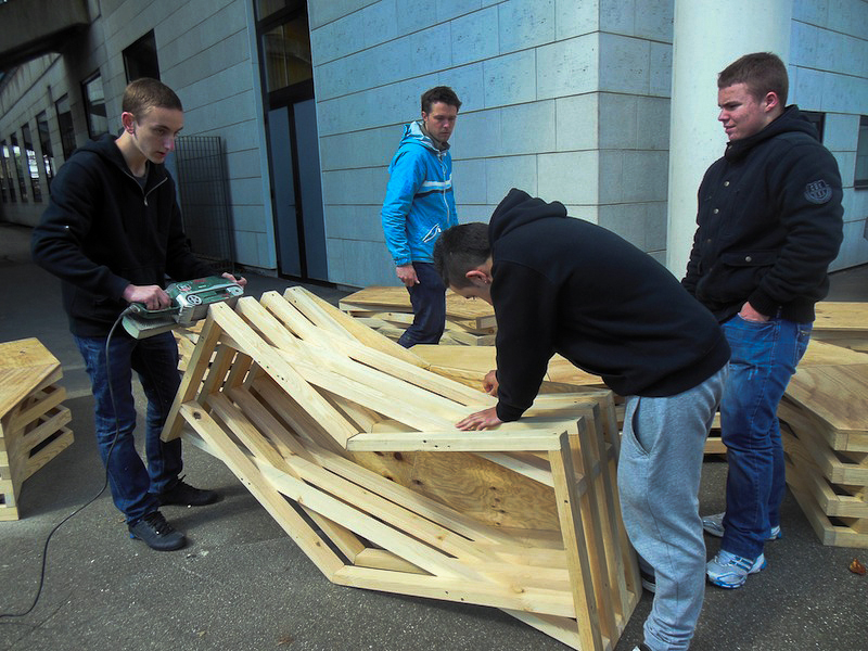 Durant la semaine du 20 mai 2013, le Collectif Etc est intervenu dans le lycée polyvalent et CFA Mathis à Shiltigheim, dans l’agglomération de Strasbourg, afin d’encadrer un atelier de construction de mobilier pour le hall du lycée.