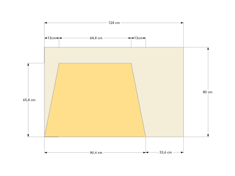 La première étape consiste à tracer et découper les plateaux en contreplaqué. Deux panneaux de bois de forme trapézoïdale sont nécessaires pour créer l’assise du meuble. Voici les mesures à tracer :