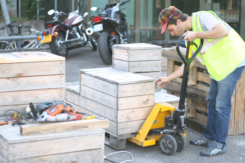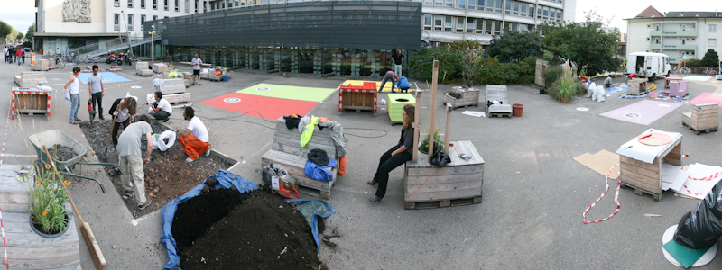 Une première étape s’était déroulée en janvier 2011 avec les étudiants architectes et ingénieurs de l’école. Elle avait donné lieu à la transformation du parking de l’école en un espace public modulable, réalisé en trois phases : appel à idée, chantier, vie du parking.