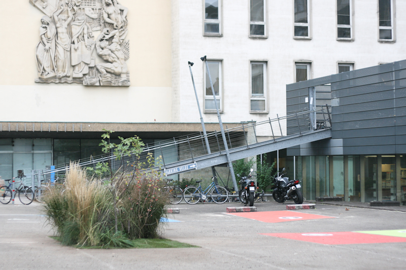 Ensuite une ancienne place dont le bitume a été retiré, a été plantée de végétaux suggérant que la mutation du parking suit dorénavant un processus irréversible: il doit être transformé dans quelques années dans le cadre de l’Opération Campus.