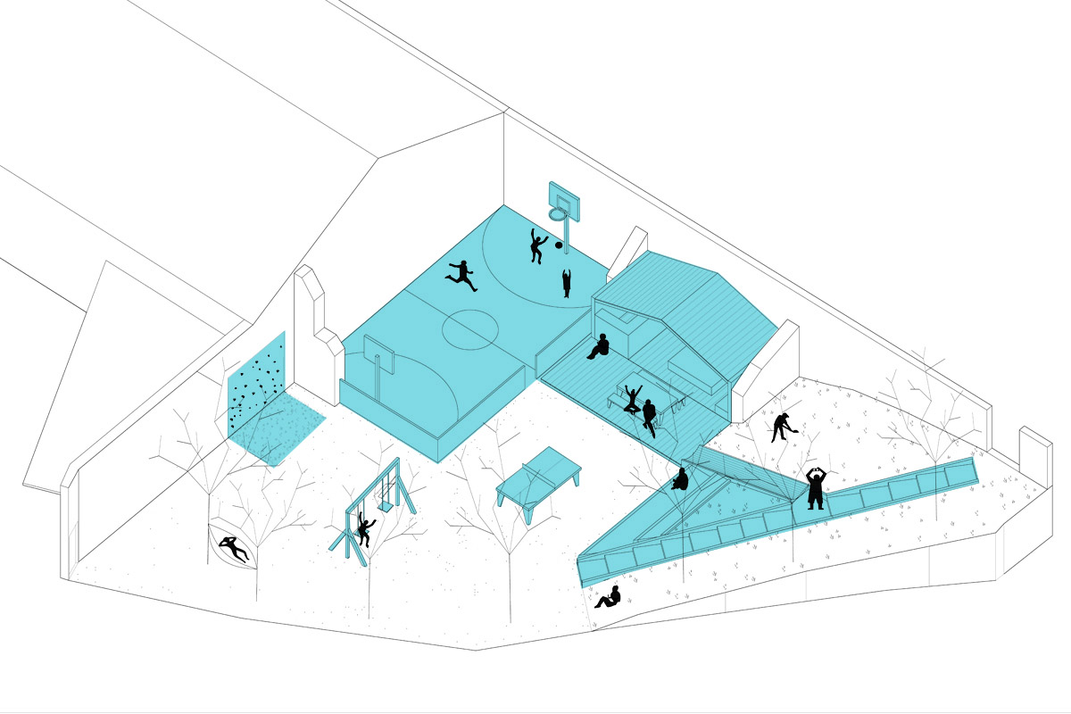 « Le Rin-té », c’est le nom qu’ils ont donné à cet espace, pour lequel ils ont imaginé de multiples équipements, tels un petit terrain de sport, une cabane avec bar, une table de ping-pong, des gradins ou encore un mur d’escalade.