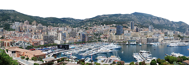 Au pied du port, les installations pour le Grand-Prix de Formule 1 sont en train de surgir, les Bentleys se faufilent à la pelle entre manitous élévateurs et techniciens en gilet jaune. L’effervescence est là, on la palpe, on passe sous les tribunes échafaudées, on piétine les chicanes rouges et blanches fraîchement peintes sur les trottoirs. On explore. Les frontières avec la France sont quasiment invisibles au sol, au détail d’un traitement de pavé, des encombrants entassés changent de nationalité d’une façade à une autre de la même rue, des plaques des noms en travertin gravé pour les monégasques, en métal émaillé chez les français. Au loin, on aperçoit mieux les limites du pays le plus dense du monde, où les tours en éternels travaux s’arrêtent.