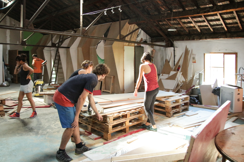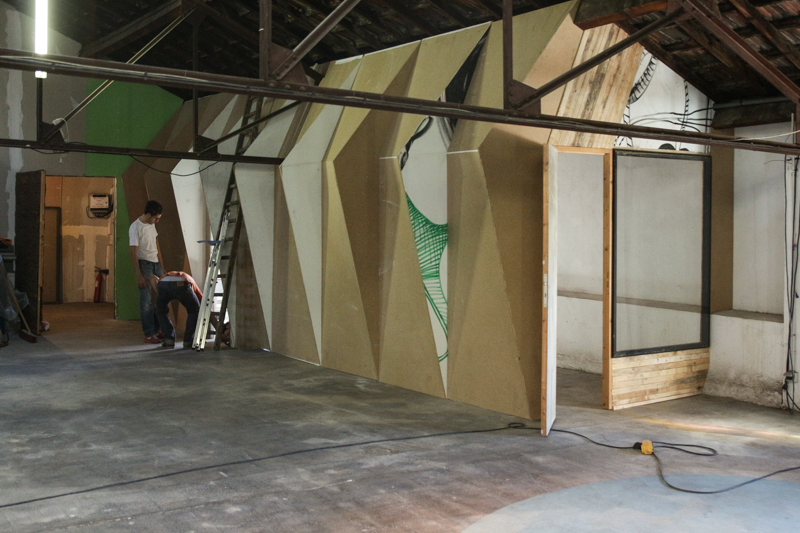 Le MuCEM démontait alors Food, une exposition temporaire. Nous avons pu récupérer une grande surface de plateaux de médium. Une fenêtre trainait au Comptoir, une porte vitrée chez Josiane, la trésorière. Et de l’isolant et des planches de 10, dans notre nouvel atelier.