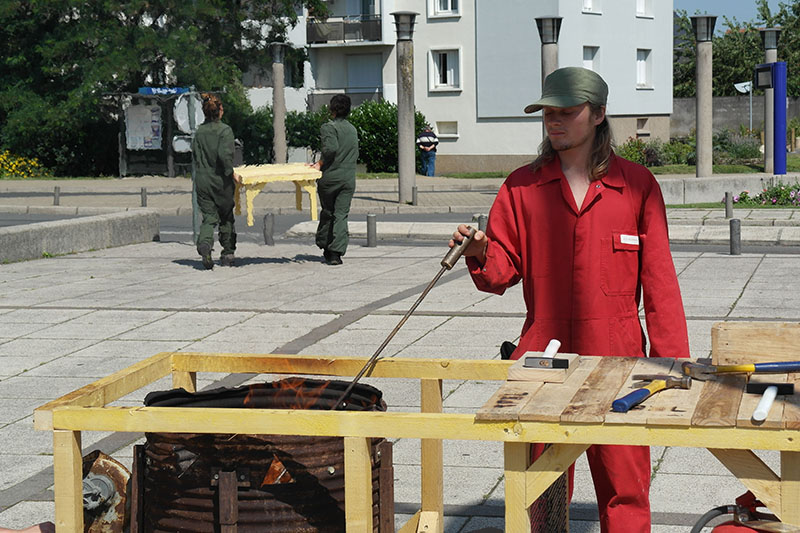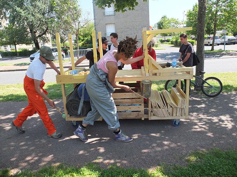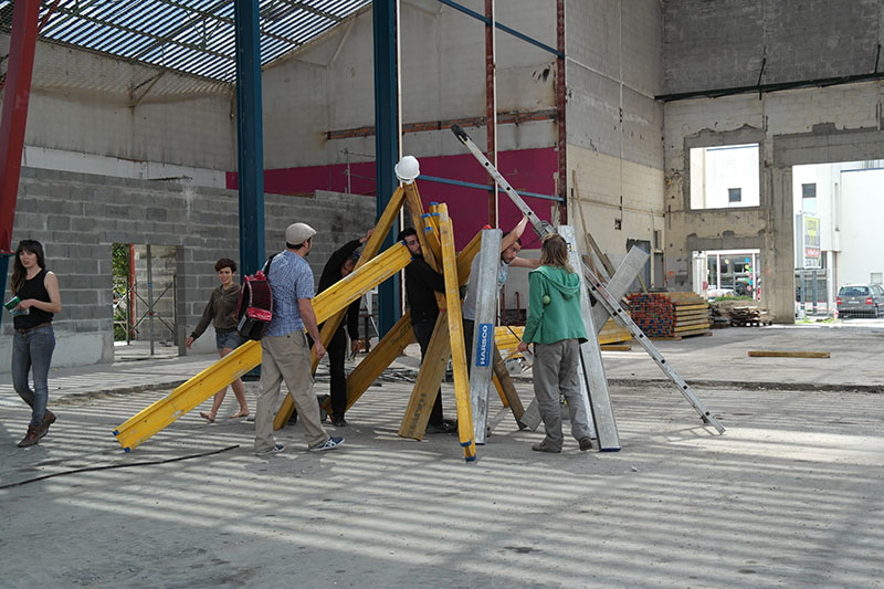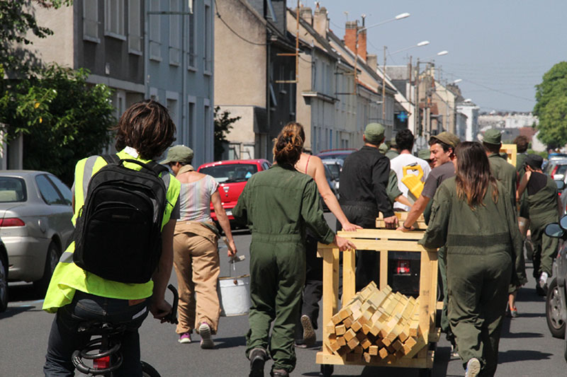 Du 26 mai au 12 juin 2014, à l’occasion d’un module de formation de la FAI-AR (Formation Avancée et Itinérante des Arts de la Rue), le pOlau (pôle des arts urbains) a proposé au Collectif Etc d’encadrer un atelier de micro-architecture.