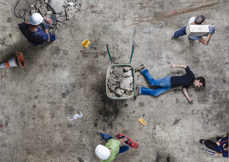Les improvisations sont réalisées sur un temps donné, on se réunit pour partager ce qu’on a vu de bien, ce qui était à garder, ce qui donnait envie d’aller plus loin. Au cours de plusieurs improvisations certains se sont mis à ériger des structures, des pyramides appuyées sur des corps, des amoncellements d’objets. À la fin de la journée, on est tous d’accord qu’on veut travailler sur l’idée de construire en direct. De penser des constructions comme un spectacle, quelque chose qui se fait sous les yeux d’un spectateur, une construction chorégraphiée. On a l’impression d’avoir fait un grand pas en avant.