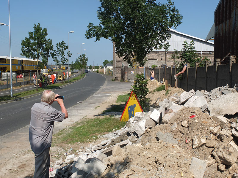Tout est prêt, la compagnie OFF nous a prêté des tenues, on a distribué les rôles de construction pour chaque étape, chaque rendez-vous est pris sur les lieux et on espère qu’on tiendra les délais. Seul un dénommé Pierre est détaché du cortège. Habillé normalement il s’adresse aux passants, on ne sait pas trop s’il en fait partie ou s’il s’y embarque de lui-même en ajoutant son témoignage personnel. Ancien cheminot, il a perdu sa femme dans la dernière inondation. L’histoire s’écrit au rythme de ses interventions, elle tisse des liens entre les différents temps du voyage. Cet enregistrement réunit plusieurs de ses textes, à écouter en parcourant les photos de la journée. Bon voyage !