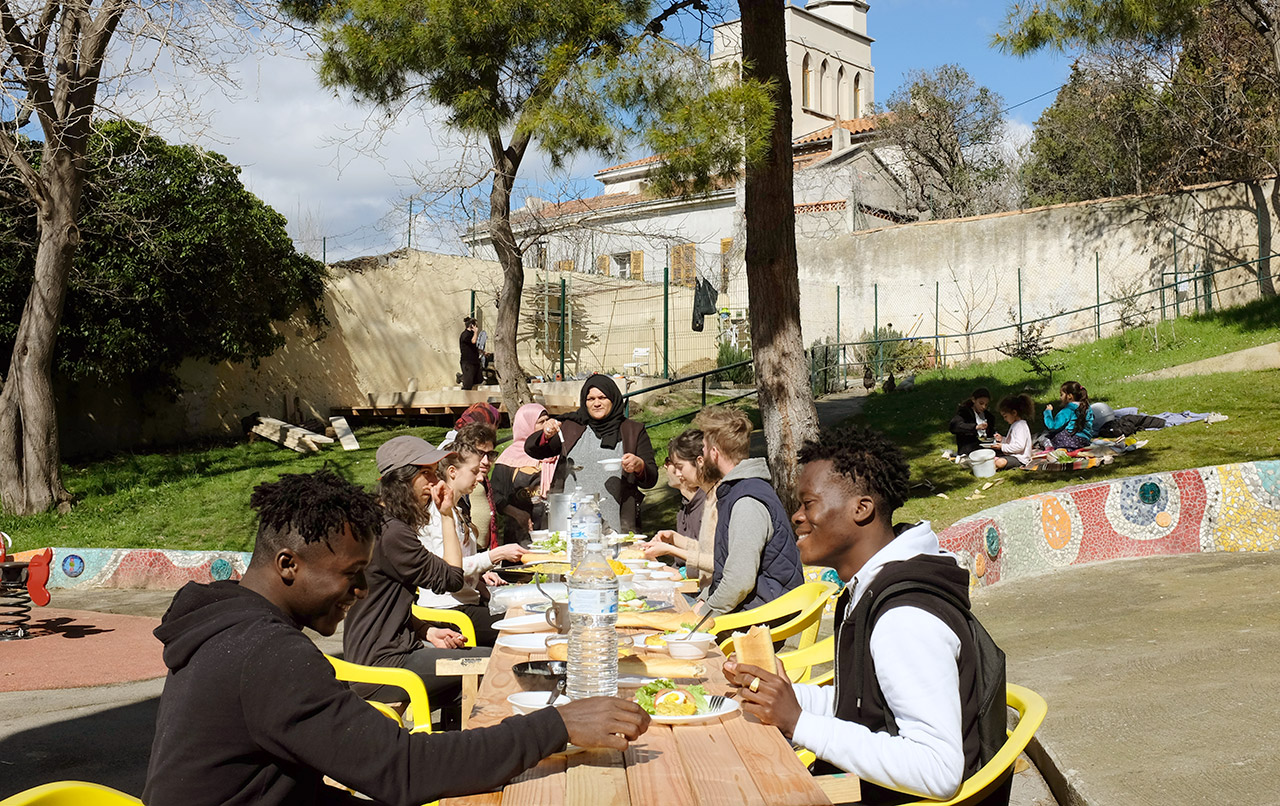 Merci aux habitants de la rue Spinelly et membres de l’association du jardin qui portent ce beau projet et qui nous ont régalé toute la semaine : Hassan, Camille, Sonia, Halem, Mahmoud, Yves, Françoise, et toutes celles et ceux qu’on oublie…