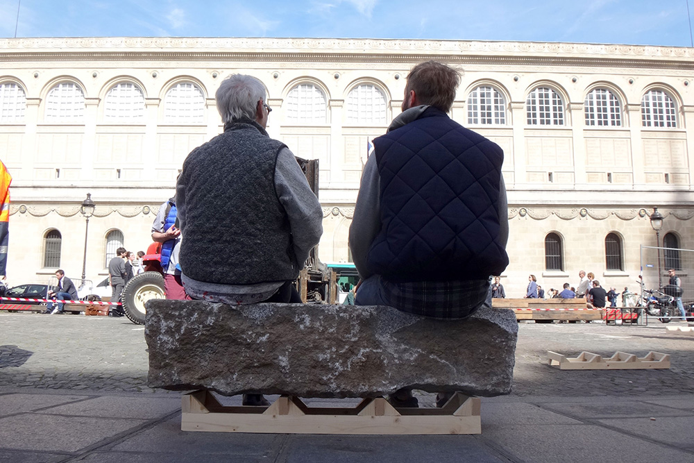 L’idée est de se nourrir de ce qui est déjà là : le granit du sol et le calcaire ornemental des façades, tout en autorisant une nouvelle appropriation des espaces. Nous avons imaginé des mobiliers qui permettent de répondre aux besoins révélés. Sans prédéterminer d’usages ni de typologie d’usagers, la matière que nous amenons doit composer un espace uni, sobre et simple.