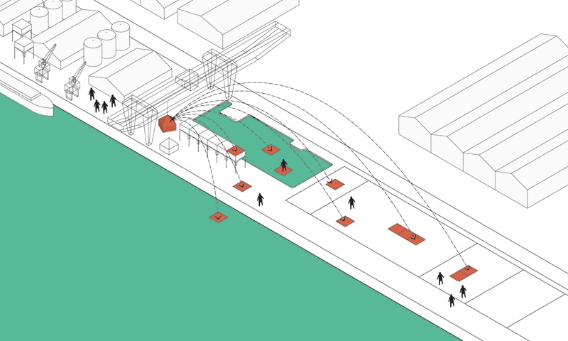 Le pont de levage, véritable mémoire du site, devient alors la machine à urbaniser le lieu. Quand les outils du passé servent à construire l’avenir…