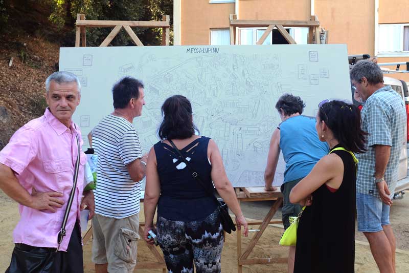 Meccalupino est le fruit du volet « participatif et artistique » d’une mission de maîtrise d’œuvre urbaine, pour l’aménagement d’un cheminement piéton, dont nous avons été partie prenante aux côtés de Safran Conceptions Urbaines, L’Adéus (L’Agence D’Études Urbaines & Sociales) et ICA (Ingénierie Corse Assistance).