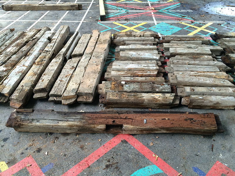> les bois de colombage anciens pour l’ossature de notre cabane.