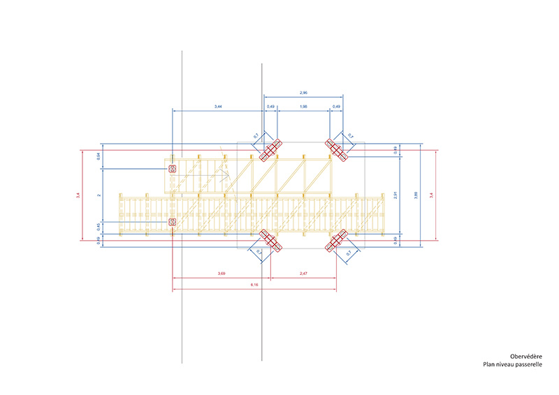 > du douglas des Vosges, pour l’ossature secondaire intégrant les accès (passerelle et escalier).