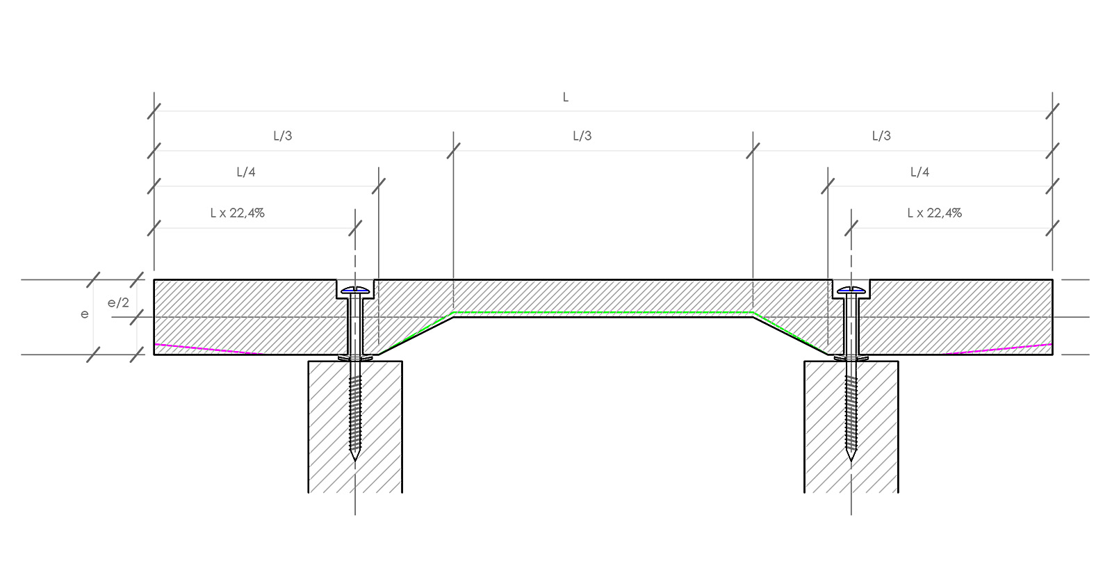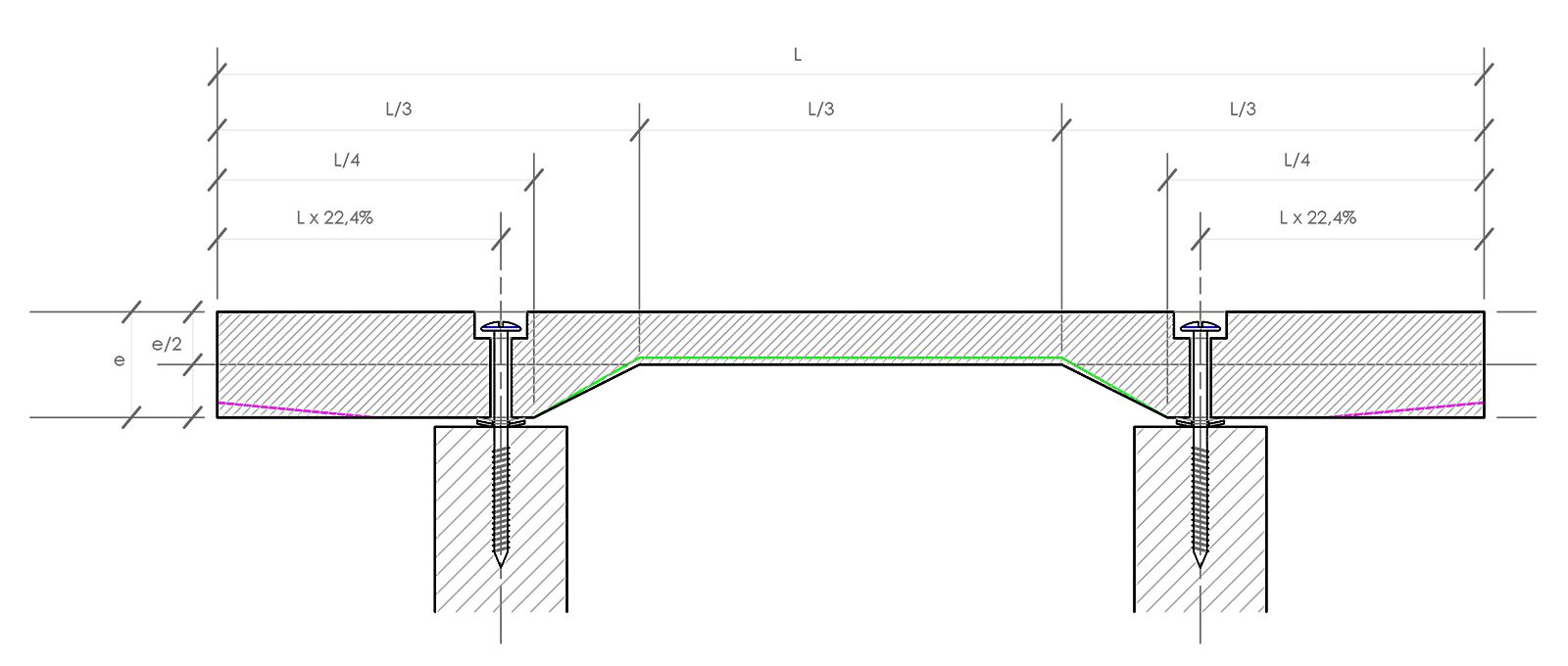 Les vis sont positionnée à la distance théorique de 22,4% de la longueur de la lame, pour laisser s’exprimer la fondamentale.