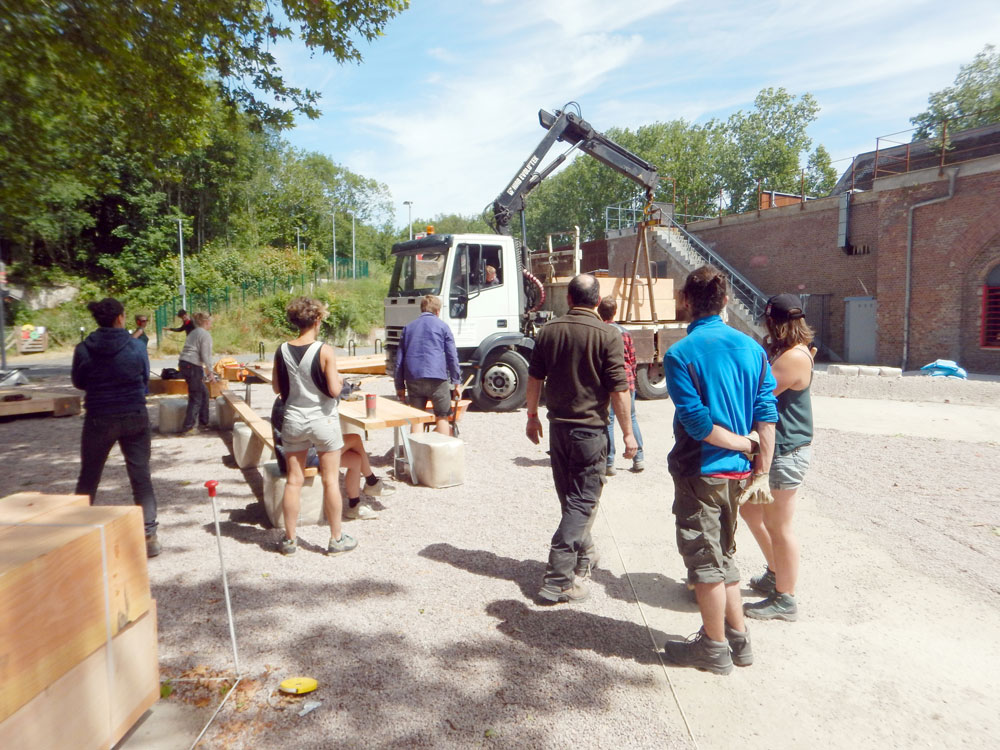 Cela faisait longtemps qu’on en rêvait et on a vu dans ce projet l’occasion de faire appel à une scierie mobile pour scier notre bois sur place à partir de grumes récupérées localement dans le Fort et ses environs, notamment en partenariat avec les services de la ville comme on avait pu le faire sur le rond-point de la Chapelle, à Paris.