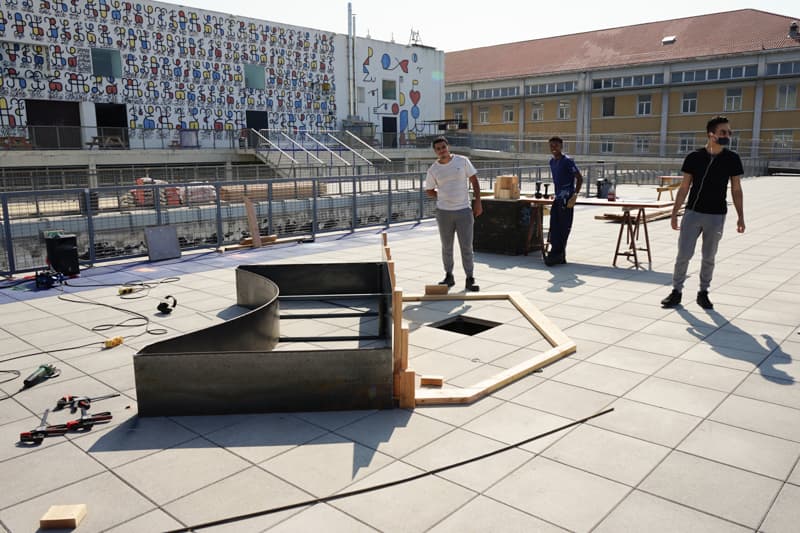 La Friche est une institution culturelle pleine d’envies variées et jamais à court de bonnes idées pour continuer à aménager leur lieu. Cette ancienne manufacture est immense : c’est un grand paquebot de béton accroché aux rails qui arrivent à la gare de Saint-Charles. C’est un « quartier dans le quartier », une institution qui se demande toujours comment continuer à créer des liens entre elle et le reste du quartier. Les jeunes du quartier – et de toute la ville – se sont déjà bien approprié le rez-de-chaussée, facile d’accès et surtout qui héberge le terrain de sport et le skatepark. La Friche dispose aussi d’un immense toit-terrasse avec la plus belle vue de tout Marseille. Mais comment attirer les gens du quartier jusqu’en haut, et ne pas faire de ce lieu le seul endroit de fêtes pour le reste des habitants de la ville de Marseille ?