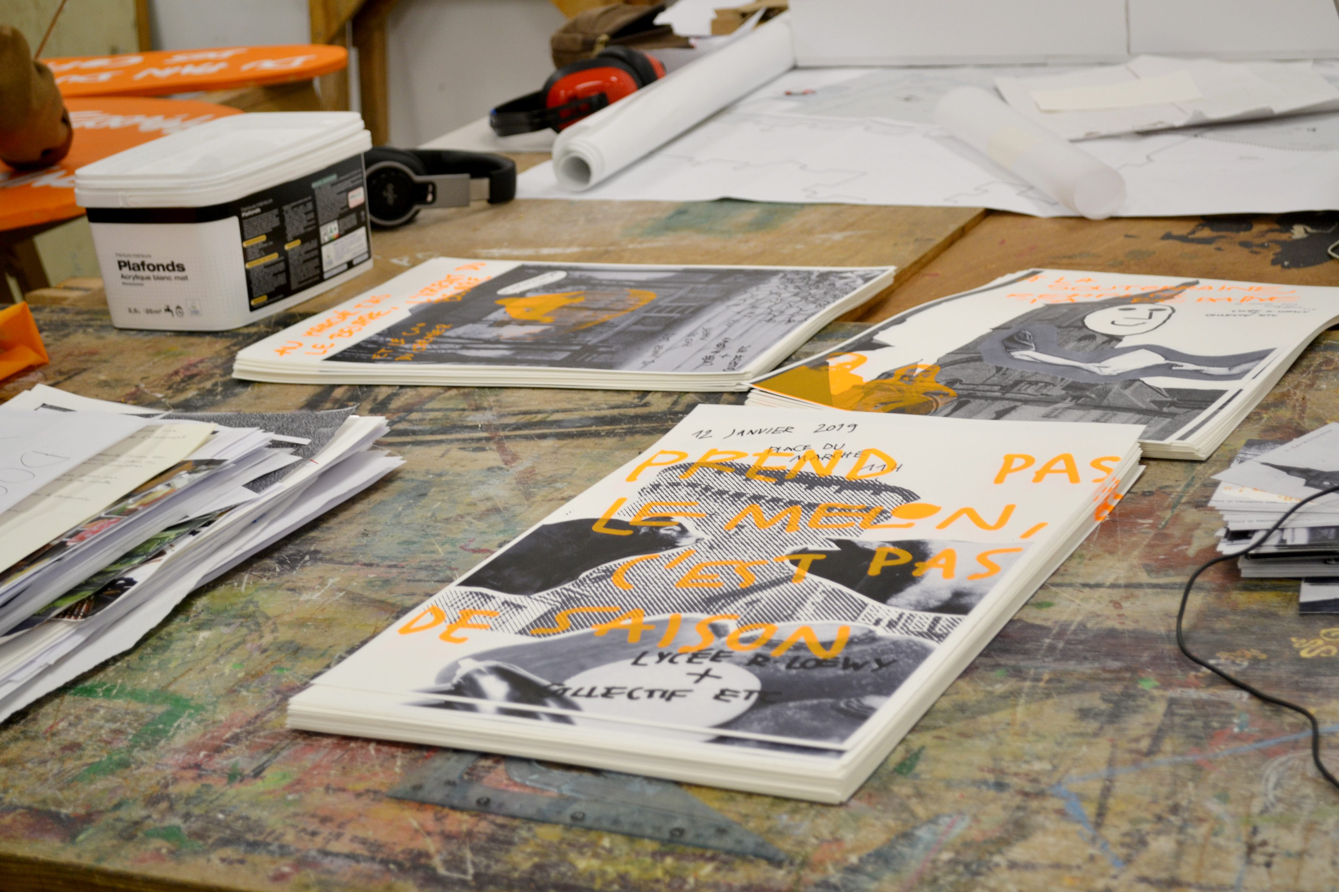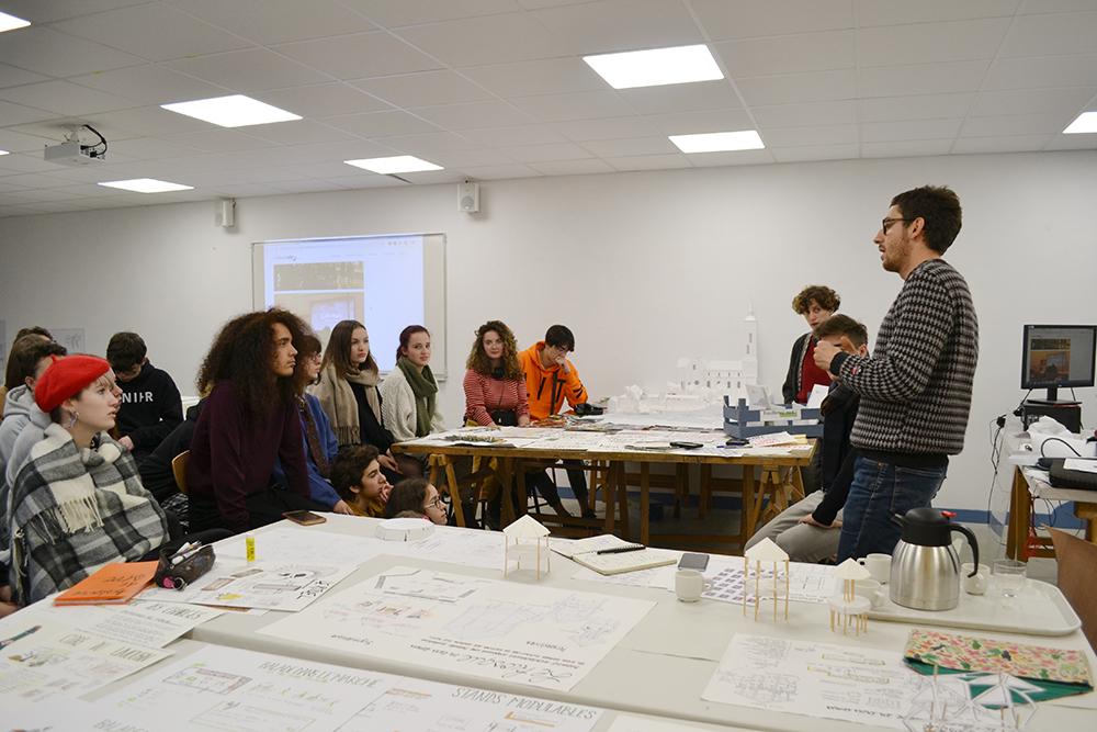 Nous souhaitons expliciter aux lycéens notre démarche de projet transversale et décloisonnée dans laquelle l’acte d’architecture contient autant une phase de conception, de construction – mais peut aussi toucher au graphisme, à la cuisine et parfois même à l’habit. Comme dans nos projets, cela permet de toucher tout le monde, là où chacun se sent des envies et des compétences.