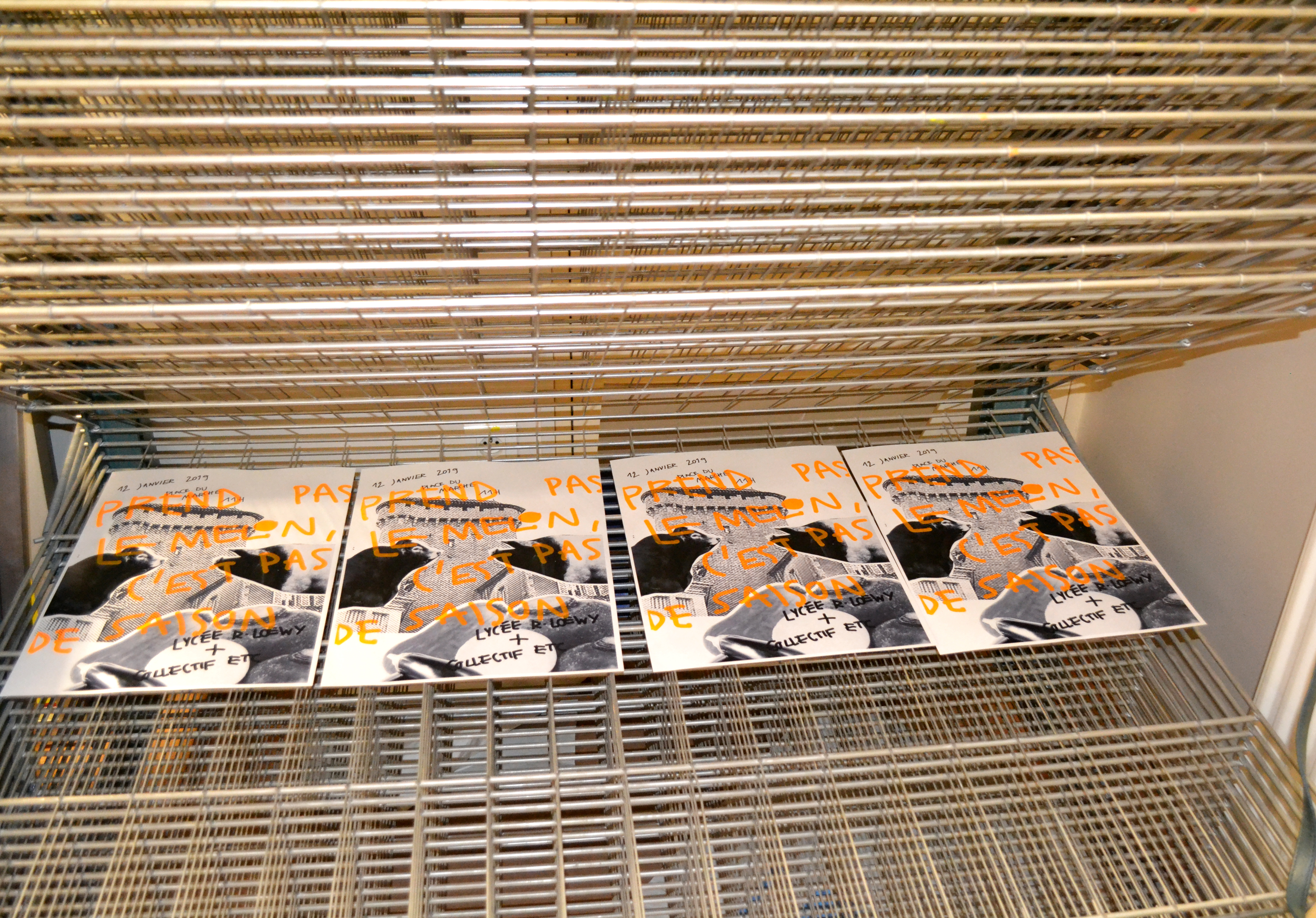 Grâce à l’immense atelier de sérigraphie présent à l’école nous avons allié dessin et chantier, conception et réalisation, qui donne une nouvelle occasion de tester de nouvelles choses et d’expérimenter avec ce groupe de graphistes en herbe.