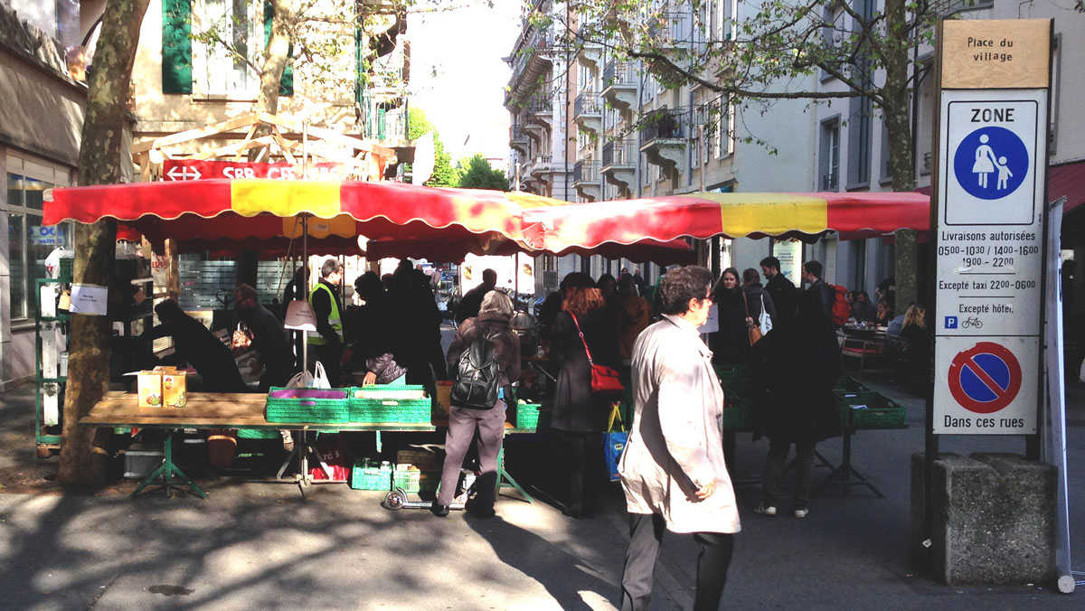 C’est dans le quartier au sud, villageois, plus habité, que nous avons décidé de travailler. Le workshop était un format court. La première journée était dédiée à la rencontre des personnes en charge du projet gare, qui nous ont présenté tous les enjeux globaux du projet. Ensuite nous avons pu faire un tour du quartier avec Oscar Gential (Urbaplan) qui venait de terminer une sérieuse étude sensible du quartier et des enjeux liés au projet (en compagnie de Laurent Matthey, de l’Université de Genève). Après des premiers temps de discussions, nous avons formés 4 groupes qui ont chacun choisi un site d’intervention où ils ont œuvré pendant trois jour.