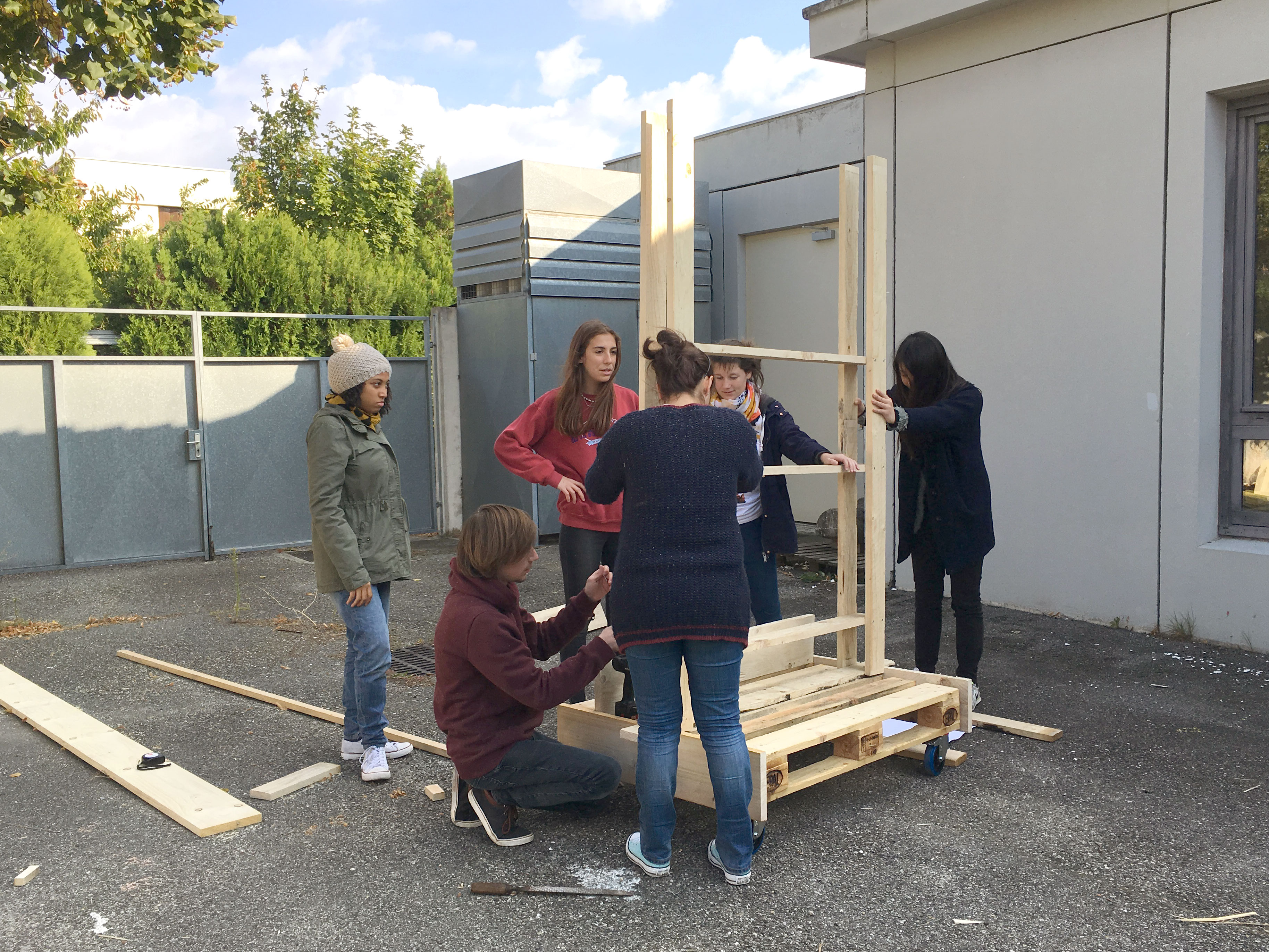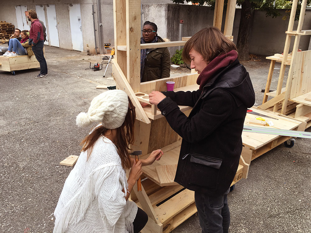 Du 10 au 14 octobre 2016 nous avons répondu à l’invitation d’enseignant-e-s de L’École supérieure d’art et design de Valence, pour conduire un atelier de construction avec les premières années.